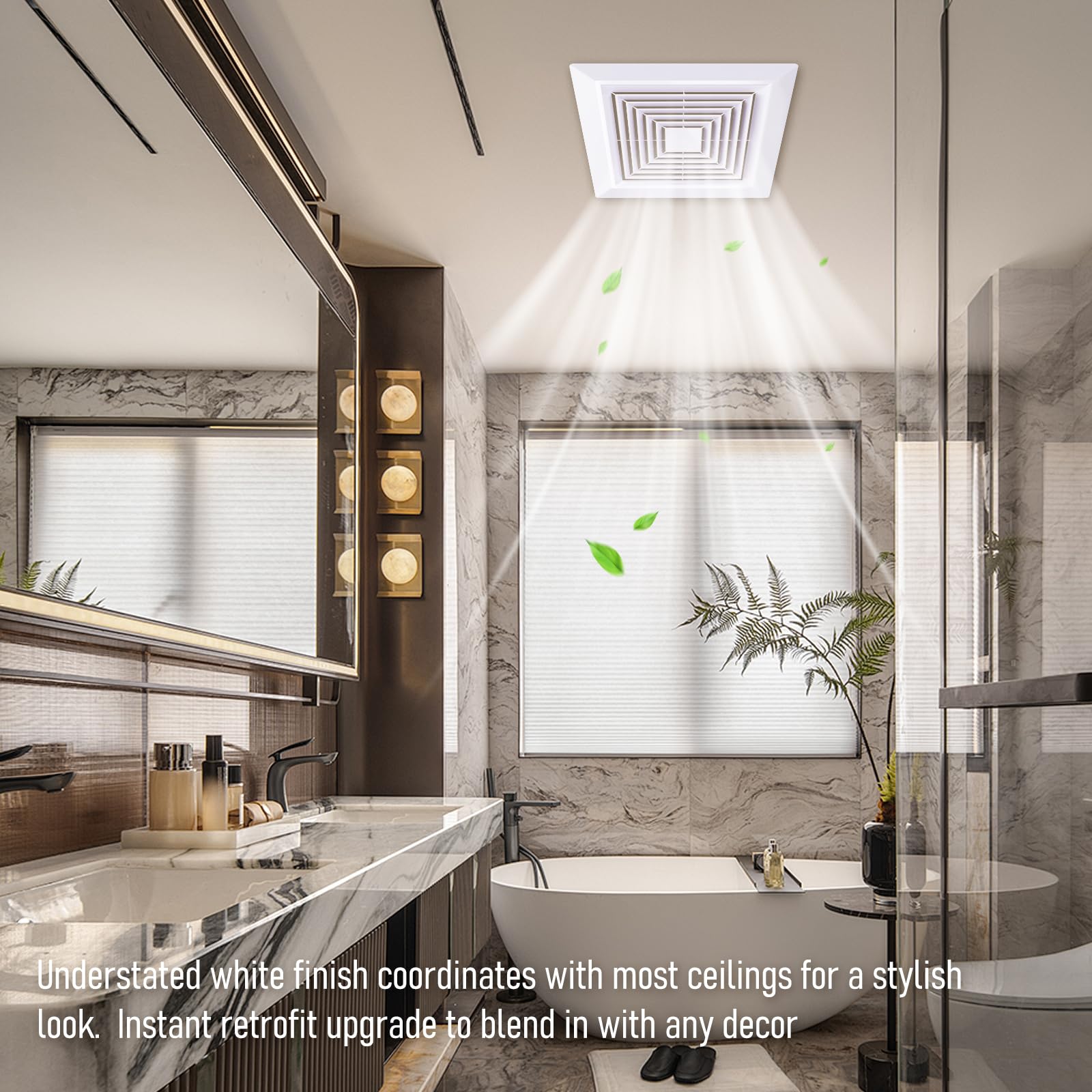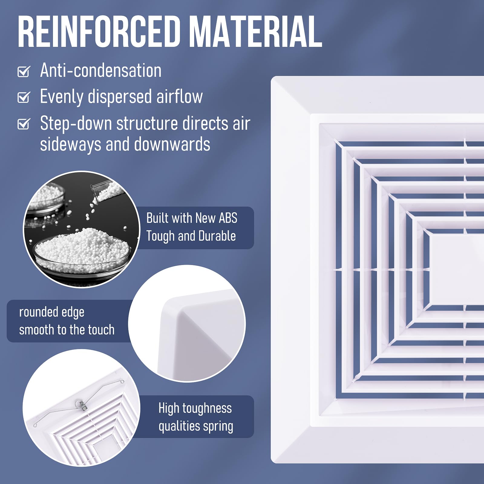 - Uniform and wide air intake distribution: Our bathroom exhaust fan covers feature a unique step-down structural grille design to ensure a 360 degree uniform air intake distribution to prevent overheating or undercooling. Ensure efficient air circulation, quickly remove odors, and create a fresh and comfortable home environment.