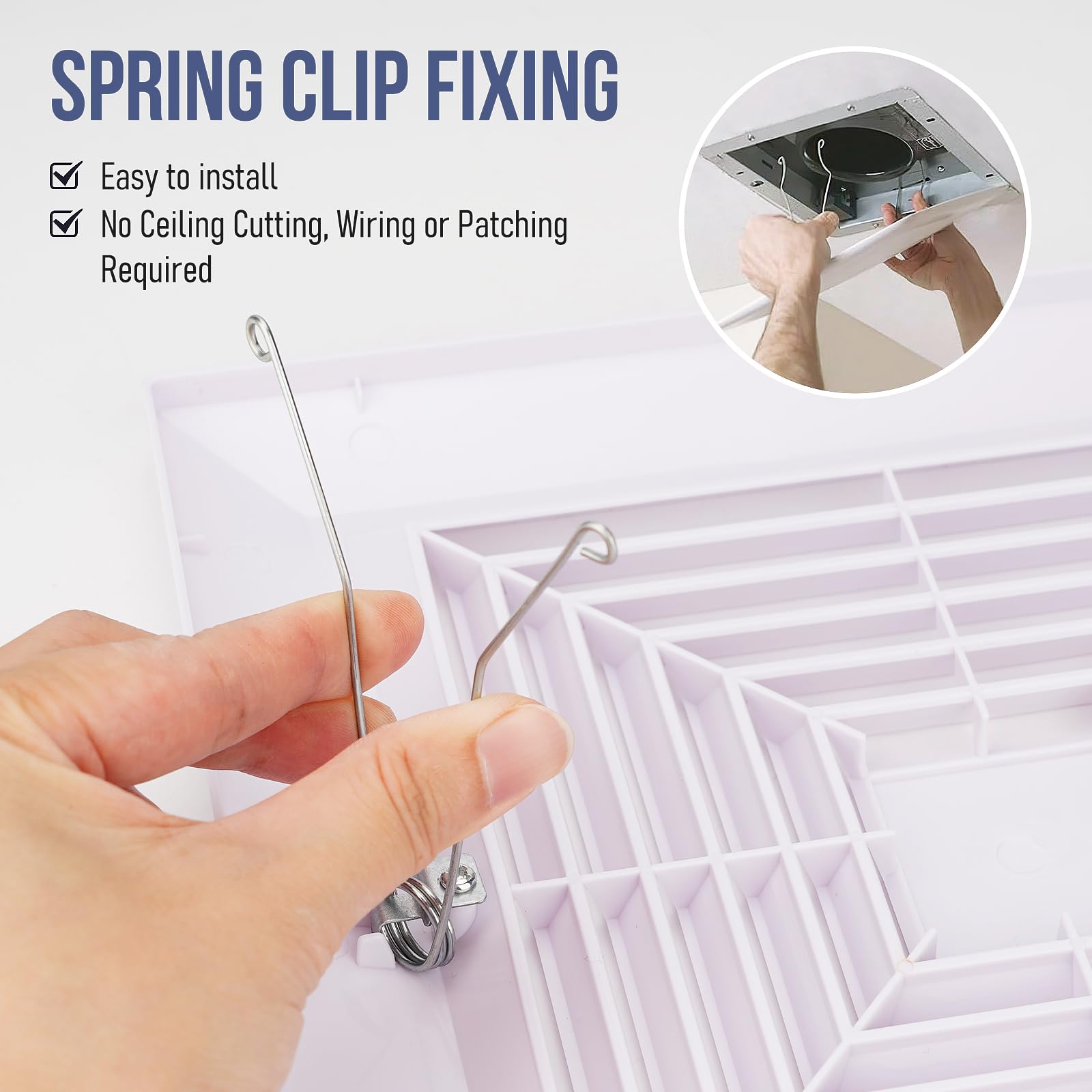 - Easy installation: The bathroom ventilator cover is easy to install without tools. With the spring included fixed on the back, you can install it yourself without professional assistance. Consists of an additional set of extended springs to meet a wider range of installation needs.