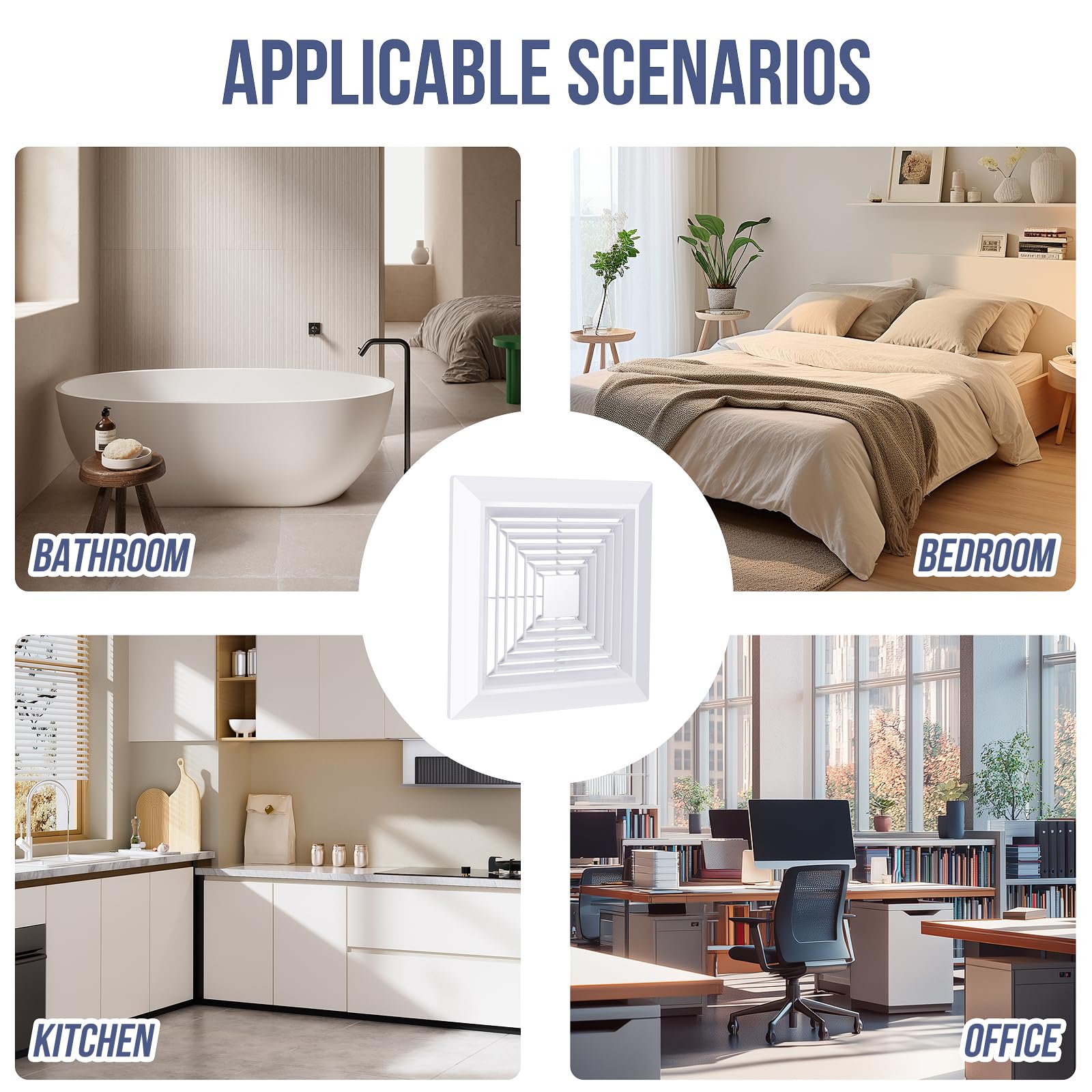 - Ideal home decor: This fan ventilation cover is a great way for people eager to quickly and easily improve the aesthetics of their home; It is ideal for replacing ventilation covers with square ceiling or wall-mounted exhaust fans, bathroom fans, ventilation fans, or home ventilation fans; Can also be used as an air diffuser or ceiling air diffuser.