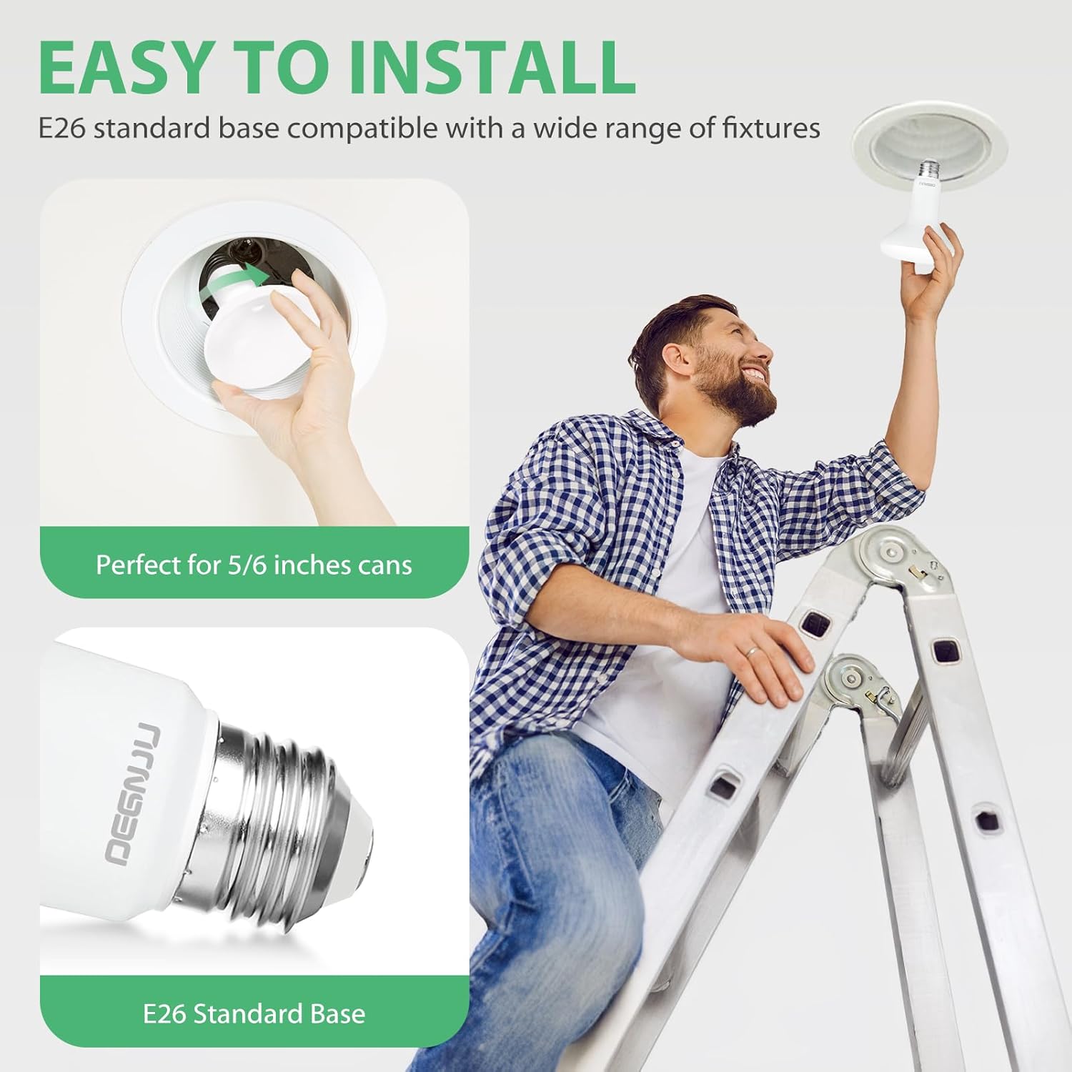 - 【APPLICATIONS】Recessed Light Bulbs with E26 Base fit 5" or 6" recessed cans, perfect for recessed track lighting, spotlights, ceiling lights, table lamps, floor lamps, and more. They are suitable for living rooms, kitchens, bedrooms, bathrooms, hallways, offices, and hotels.