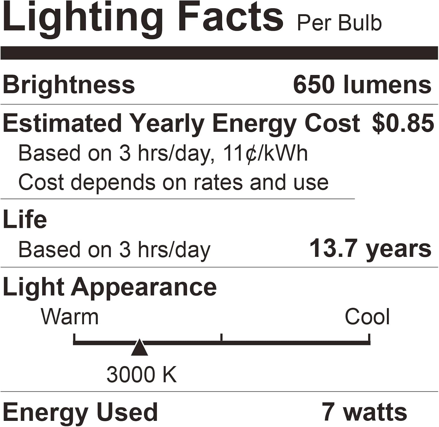 | 650 Lumens | 650 Lumens | 650 Lumens | 650 Lumens | 650 Lumens | 650 Lumens | 650 Lumens |