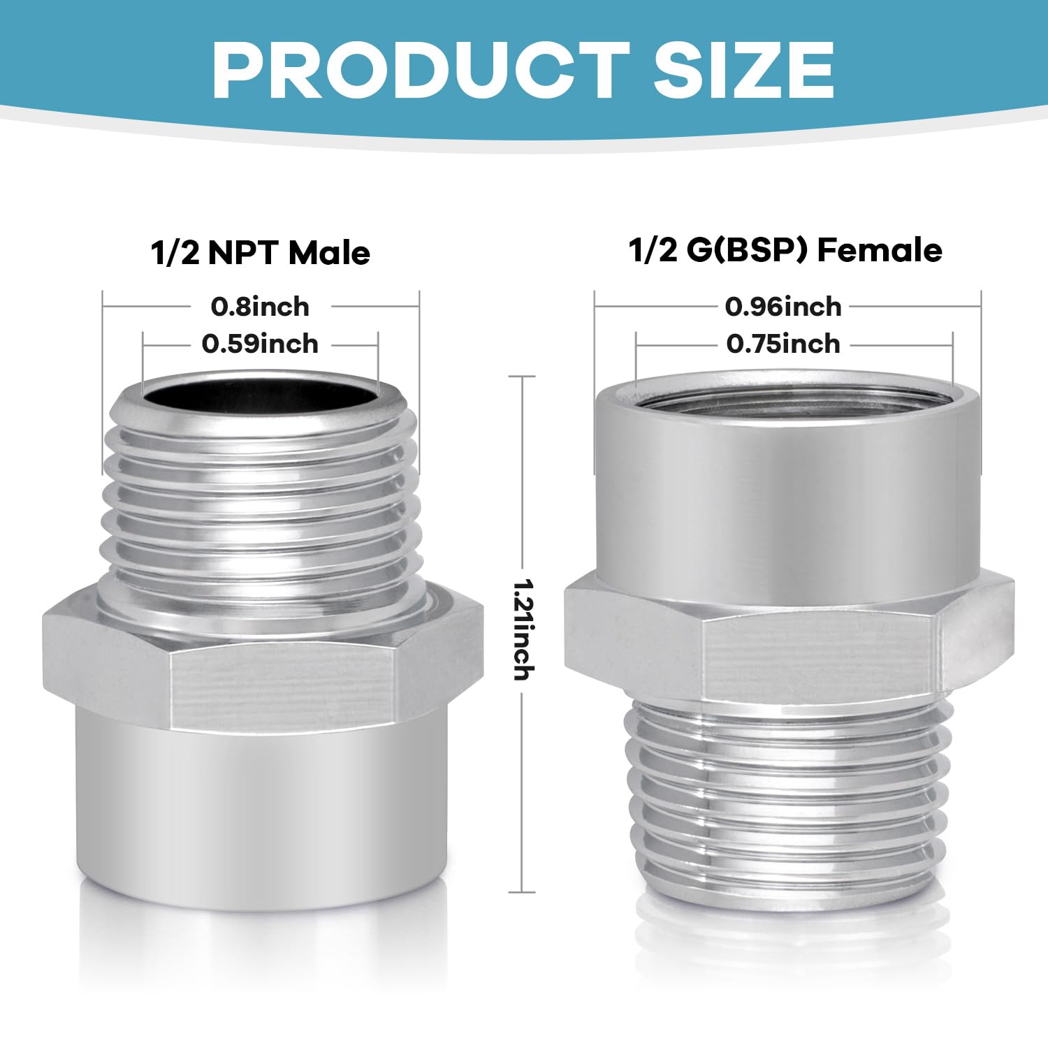 - 【Seamless Metric to NPT Conversion】 Easily convert European BSP (G) 1/2" female threads to U.S. standard NPT 1/2" male threads—ideal for adapting imported plumbing components.