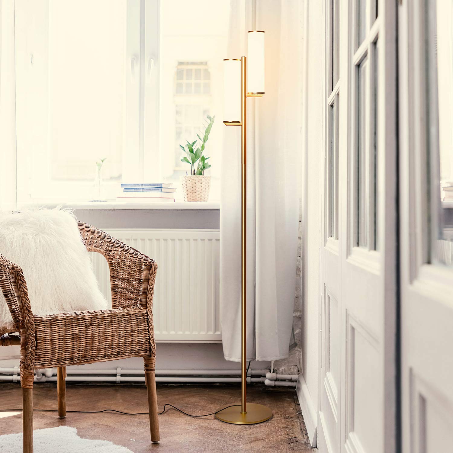 Brightech Gemini Dimmable Floor Lamp with Two Lights - Modern Tall Tree Lamp for Bedroom, Office, Living Room - Gold/Brass