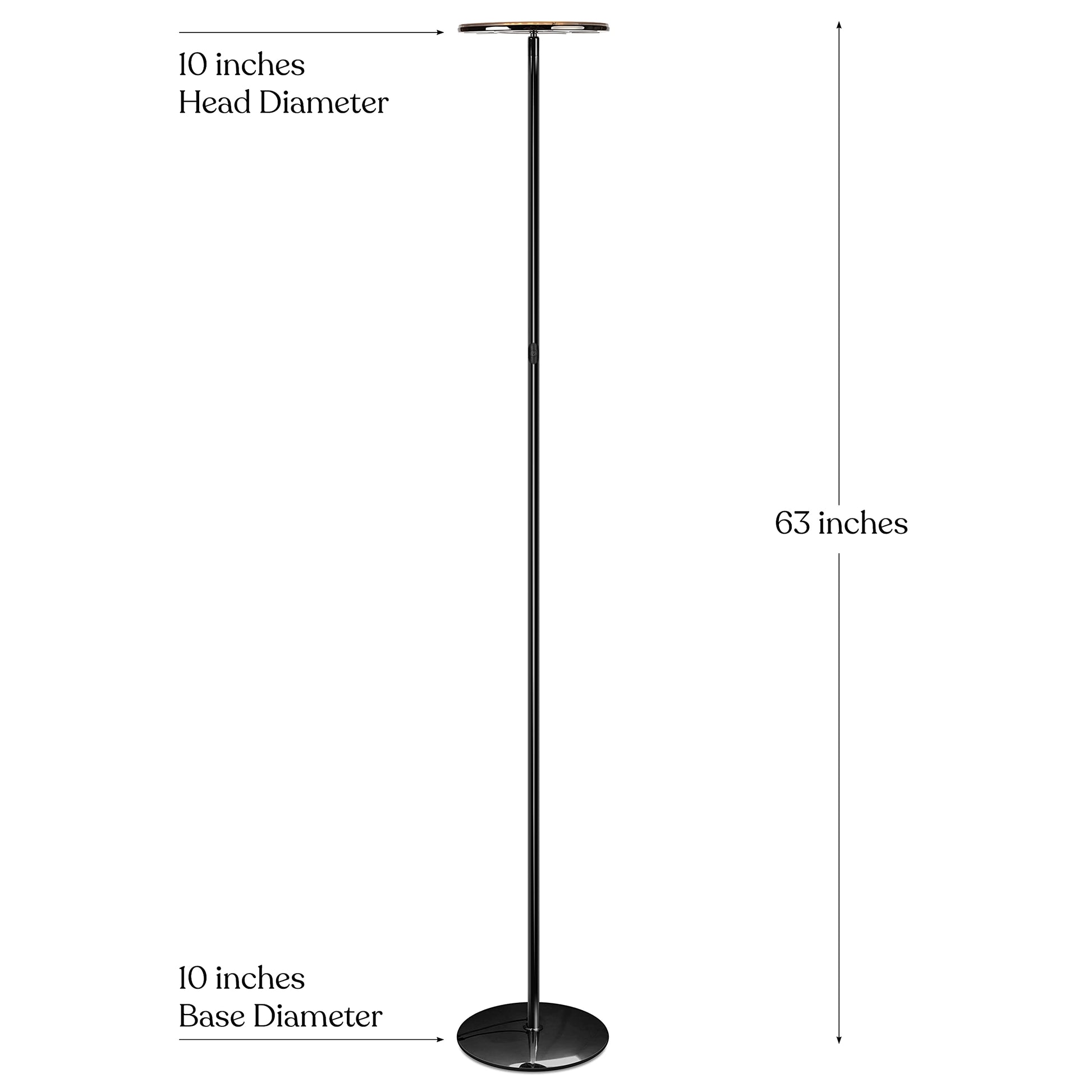 Brightech Sky LED Floor lamp, Torchiere Super Bright Floor Lamp for Living Rooms & Offices - Dimmable, Tall Standing Lamp for Bedroom Reading - Black Chrome