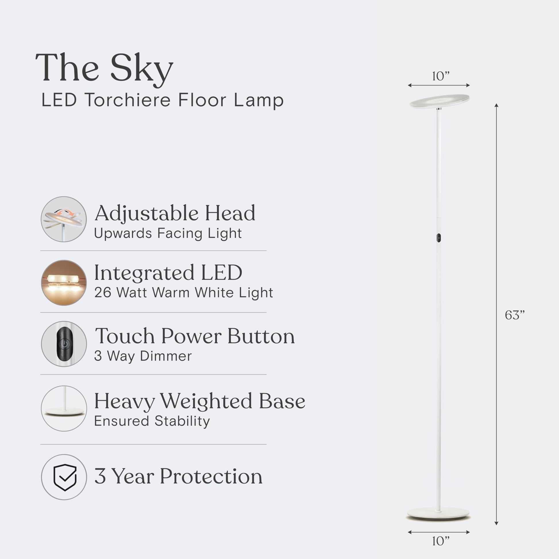 Brightech Sky LED Torchiere Super Bright Floor Lamp - Contemporary, High Lumen Light for Living Rooms and Offices - Dimmable, Indoor Pole Uplight for Bedroom Reading - White