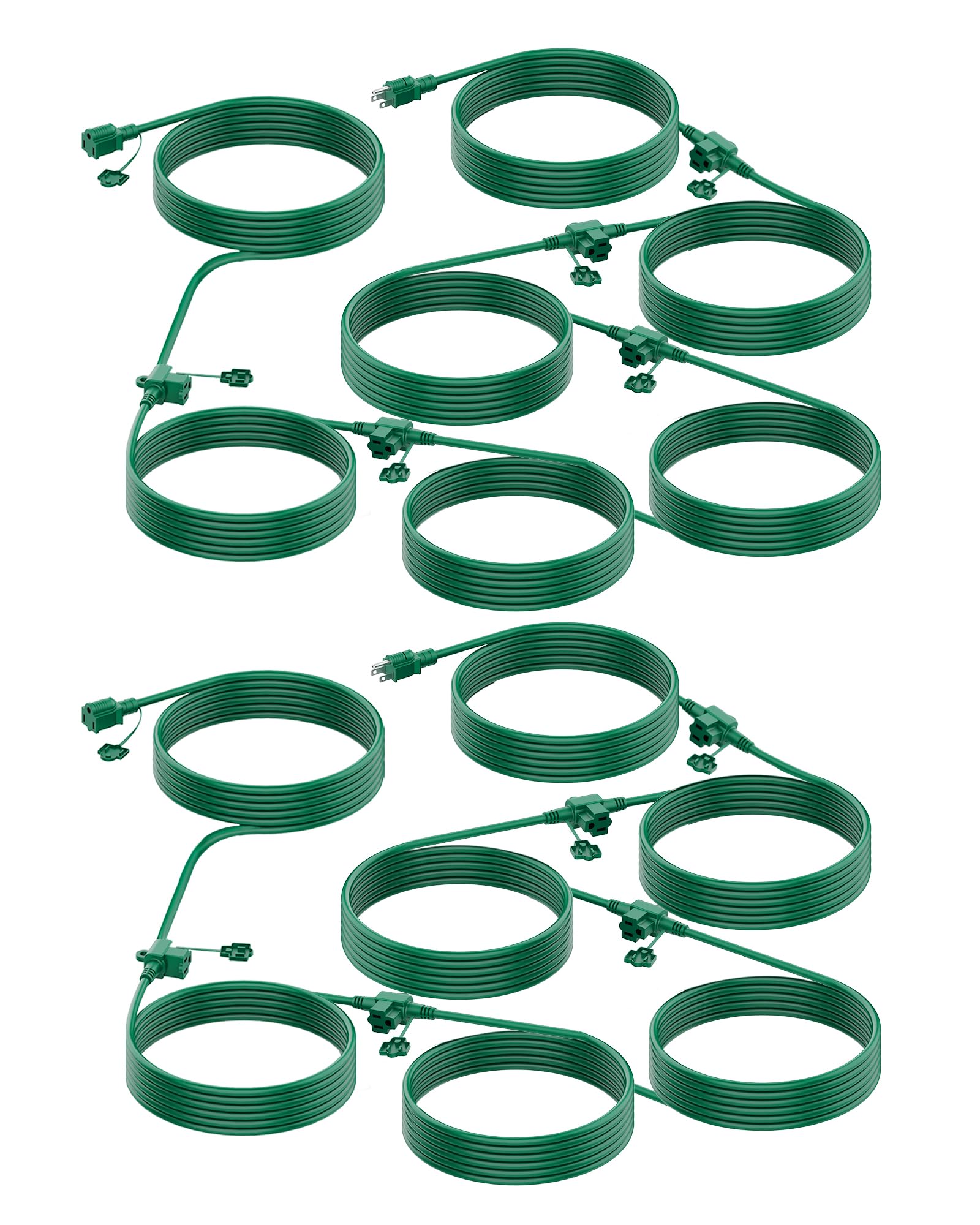 - Evenly Spaced 12 Outlets: Each set is 50 feet. Total of 100 feet Christmas light extension cord outdoor. 10 feet between plug and the first socket, 8 feet between other sockets