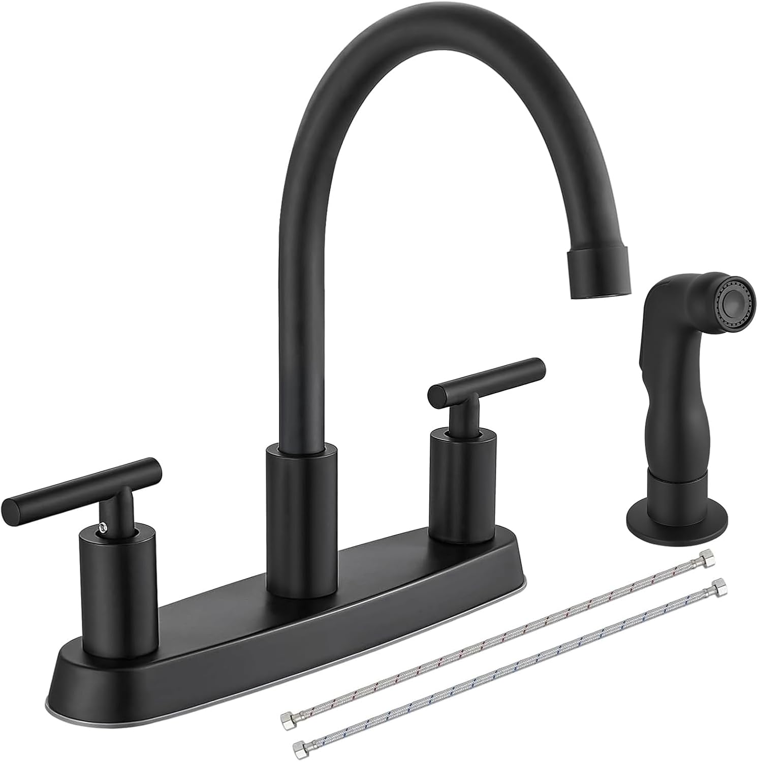 Brushed Nickel Kitchen Faucet with 360° Rotating Spout & Side Sprayer - 2 Handle, 8 Inch Centerset