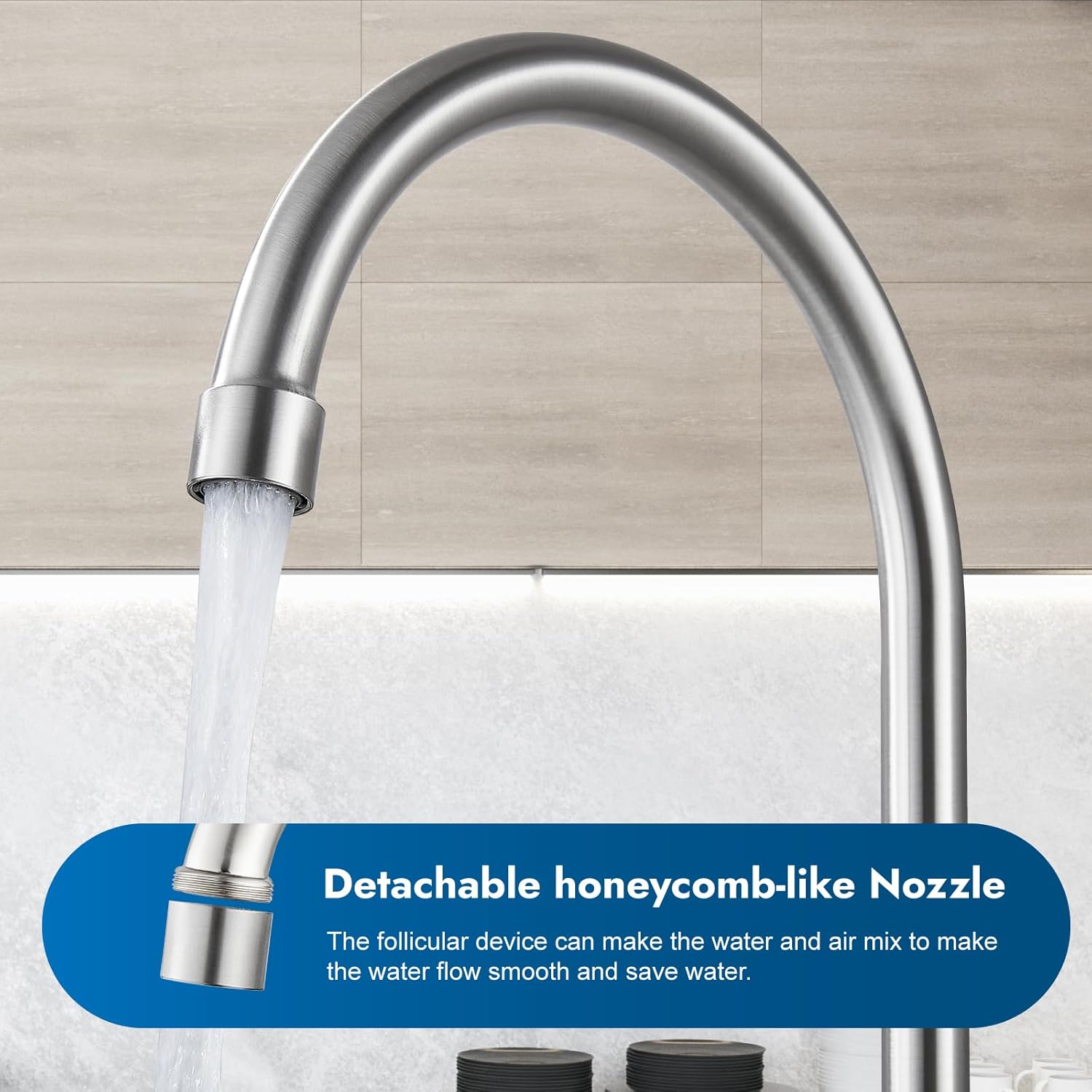 - Kitchen Faucet with Sprayer: The pull-out sprayer extends up to 47.2 inches and gives a strong, focused spray with a thumb press. It easily reaches every corner of the sink—perfect for washing dishes, veggies, and cleaning. Makes kitchen tasks quicker and easier