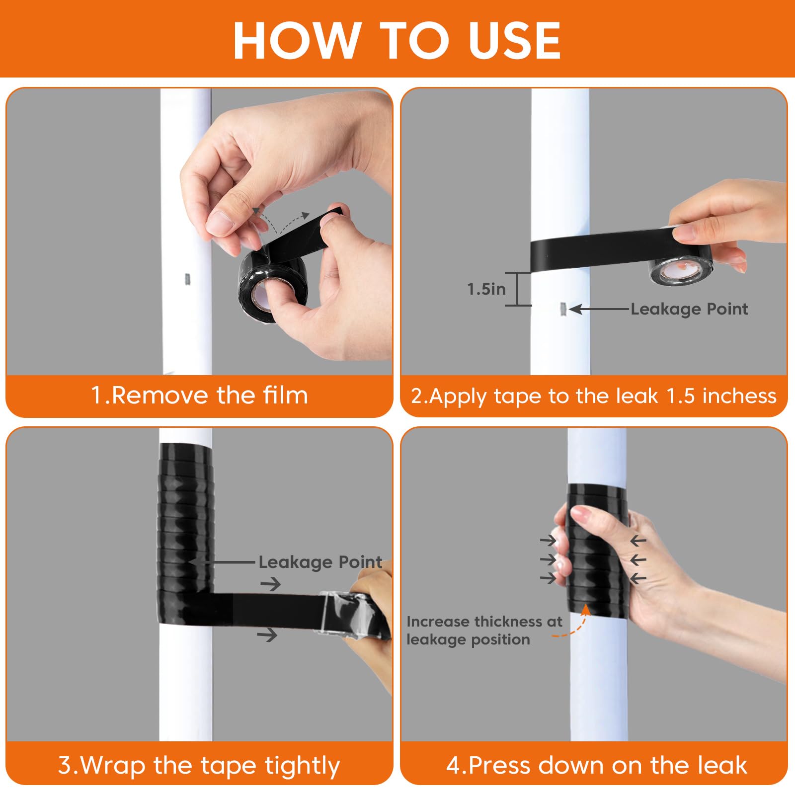 - Waterproof Silicone Tape - This waterproof tape for leaks is waterproof, can be used for sealing and plugging water pipes and ducts, just one roll of silicone tape can solve the problem of leaking water pipes;