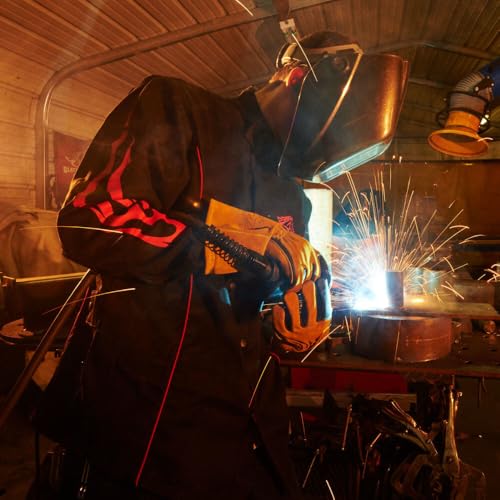 BSX BX9C Black W/Red Flames Cotton Welding Jacket - XL