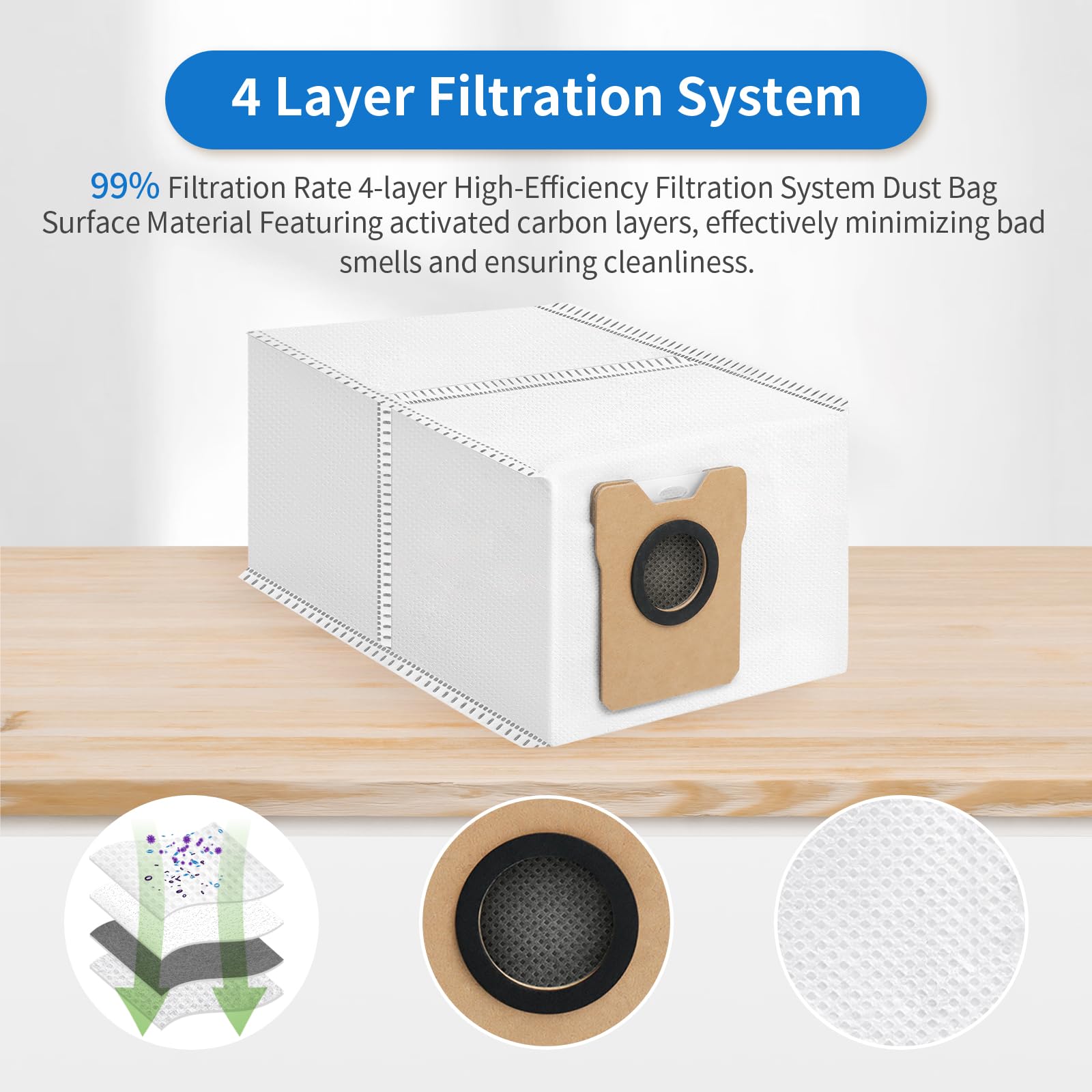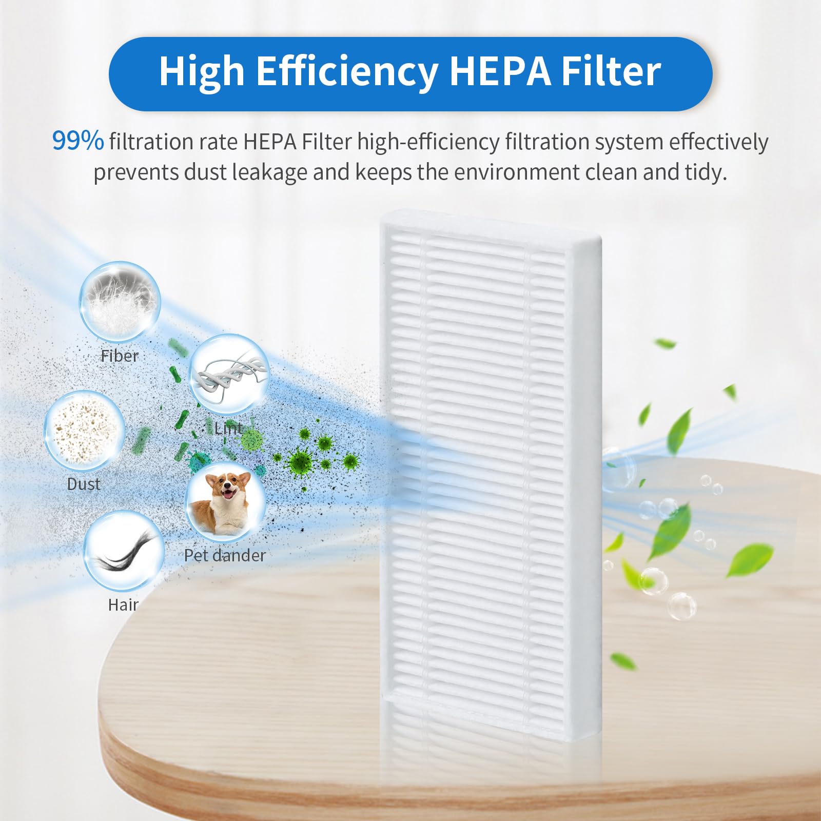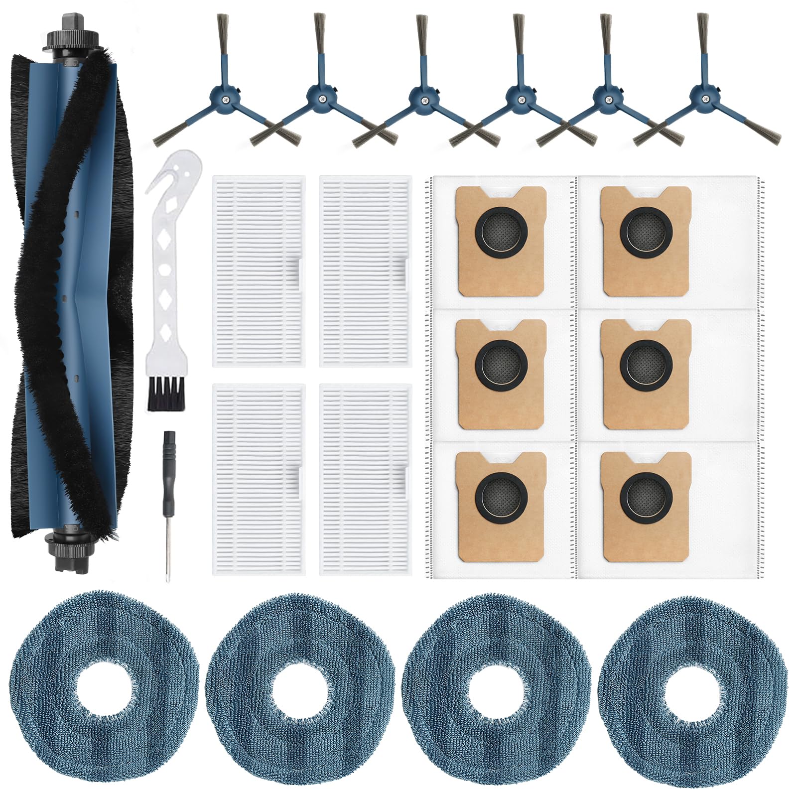- 【Package Include】This is a basic set of replacement accessories to solve the trouble that you often need to buying multiple vacuum cleaner attachments. 4 x HEPA Filters, 4 Mop Pads, 6 x Side Brush, 6 Dust Bags, 1 Main Roller Brush. Compatible and work just like the original one, To keep robot running at best performance.