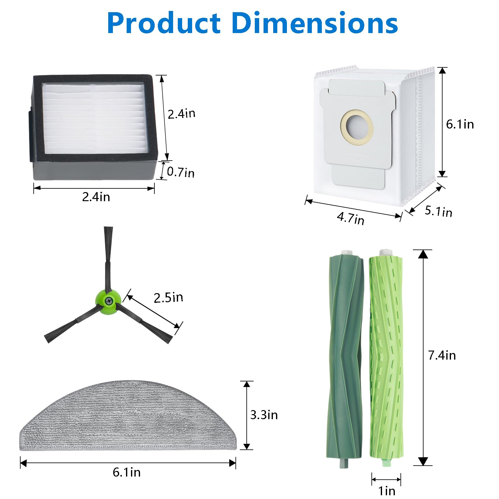- 【Customer Service】If you have any questions about our product, please feel free to contact our reliable customer service. We will promptly solve any problems for you. Package includes: Roomba Combo i3+ (3574) i5+ and j5+ (Plus versions) Replacement Parts Accessories, 2 Main Brush, 4 Hepa Filters 4 Mop Pads 6 Side Brush 6 Dust Bags,1 Screwdriver 1 Clean Tool, 24 Pack.