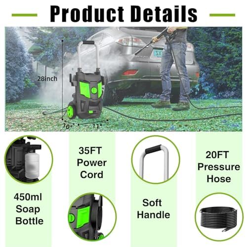 - Buyplus Pressure Washer with pressure up to 4500PSI at 2.8GPM.