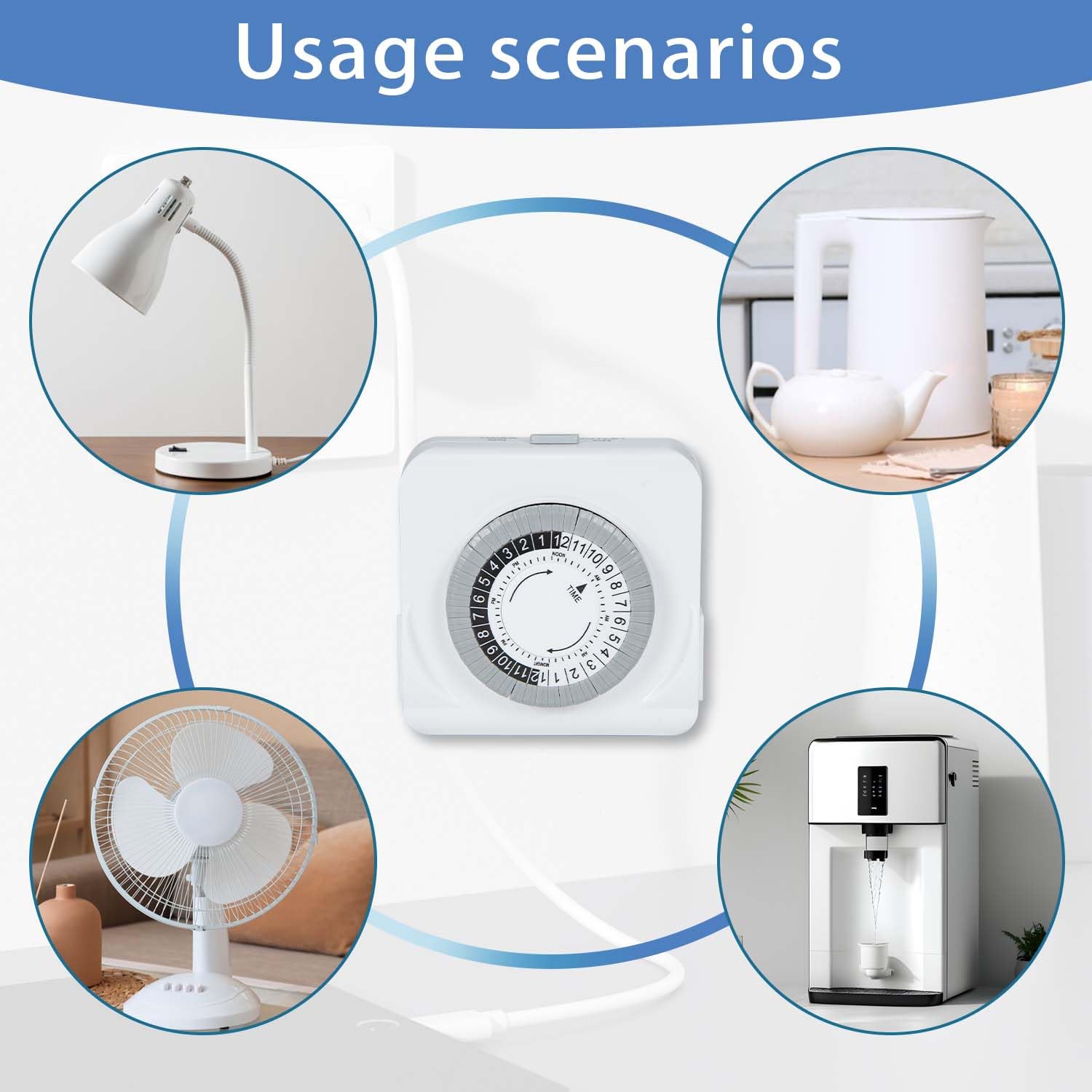 - 【User-Friendly Operation】The indoor mechanical timer is incredibly easy to use. Simply turn the dial to the current time and adjust the pins to set your preferred ON/OFF times, making it suitable for various devices like lights, decorations, and appliances