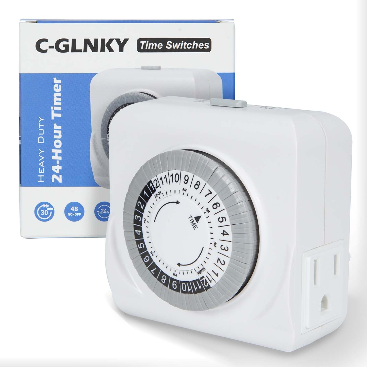 C-GLNKY 24-Hour Mechanical Timer for Electrical Outlets, Dual 3-Prong Outlets, 30-Minute Intervals, for Room Lights and Home appliances, 125V 15A, ETL Certified