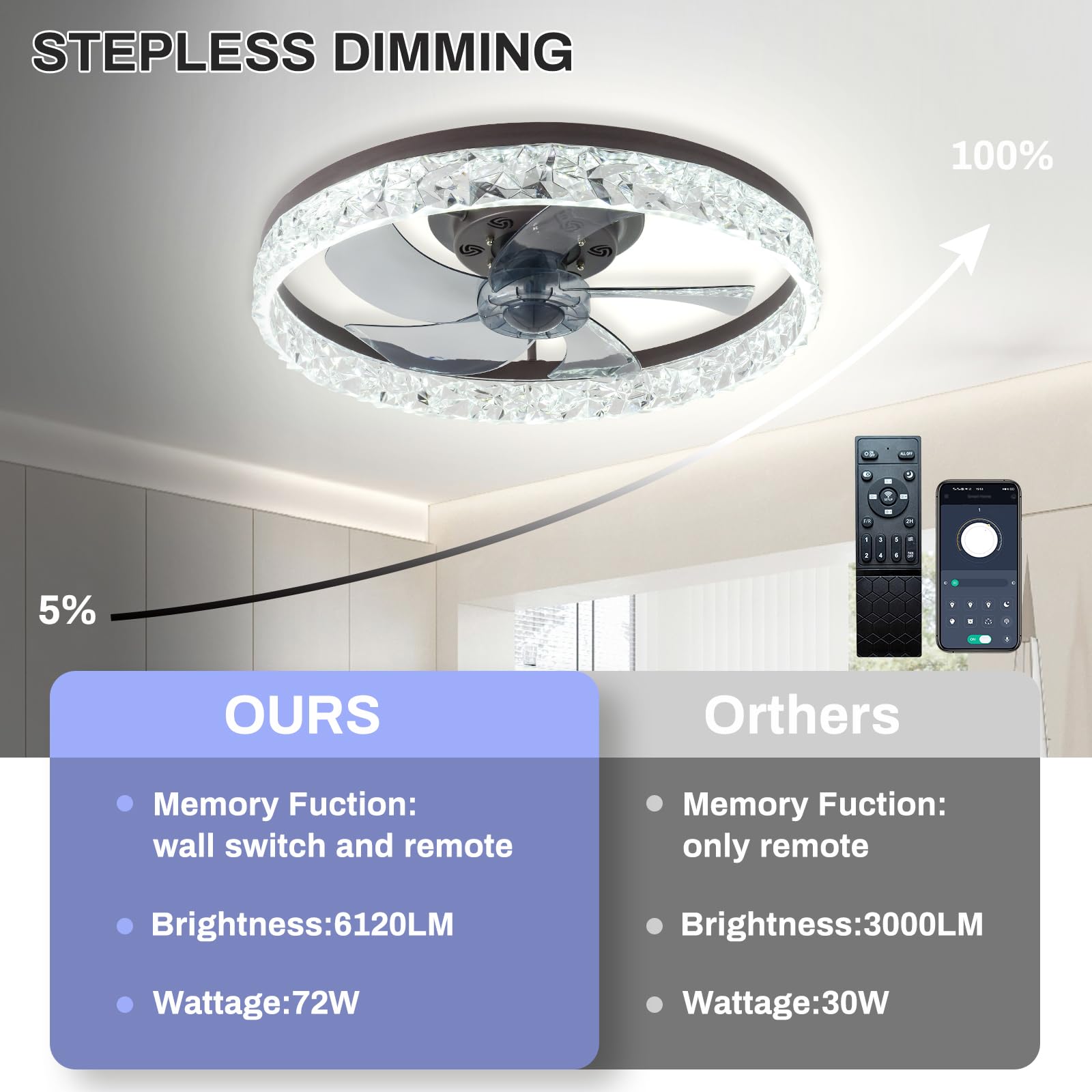 Cainjiazh 20" Low Profile Ceiling Fans with Lights and Remote Fandelier Ceiling Fan Flush Mount 3000K-6500K Smart Bladeless LED Fan Light Brown Modern Ceiling Fans with Lights for Bedroom