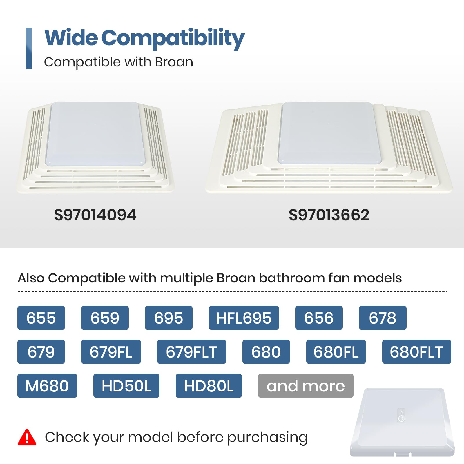 - Wide Compatibility – Compatible with multiple Broan bathroom fan models, including 655, 659, 695, HFL695, 656, 678, 679, 679FL, 679FLT, 680, 680FL, 680FLT, M680, HD50L, HD80L, and more. Check your model before purchasing.