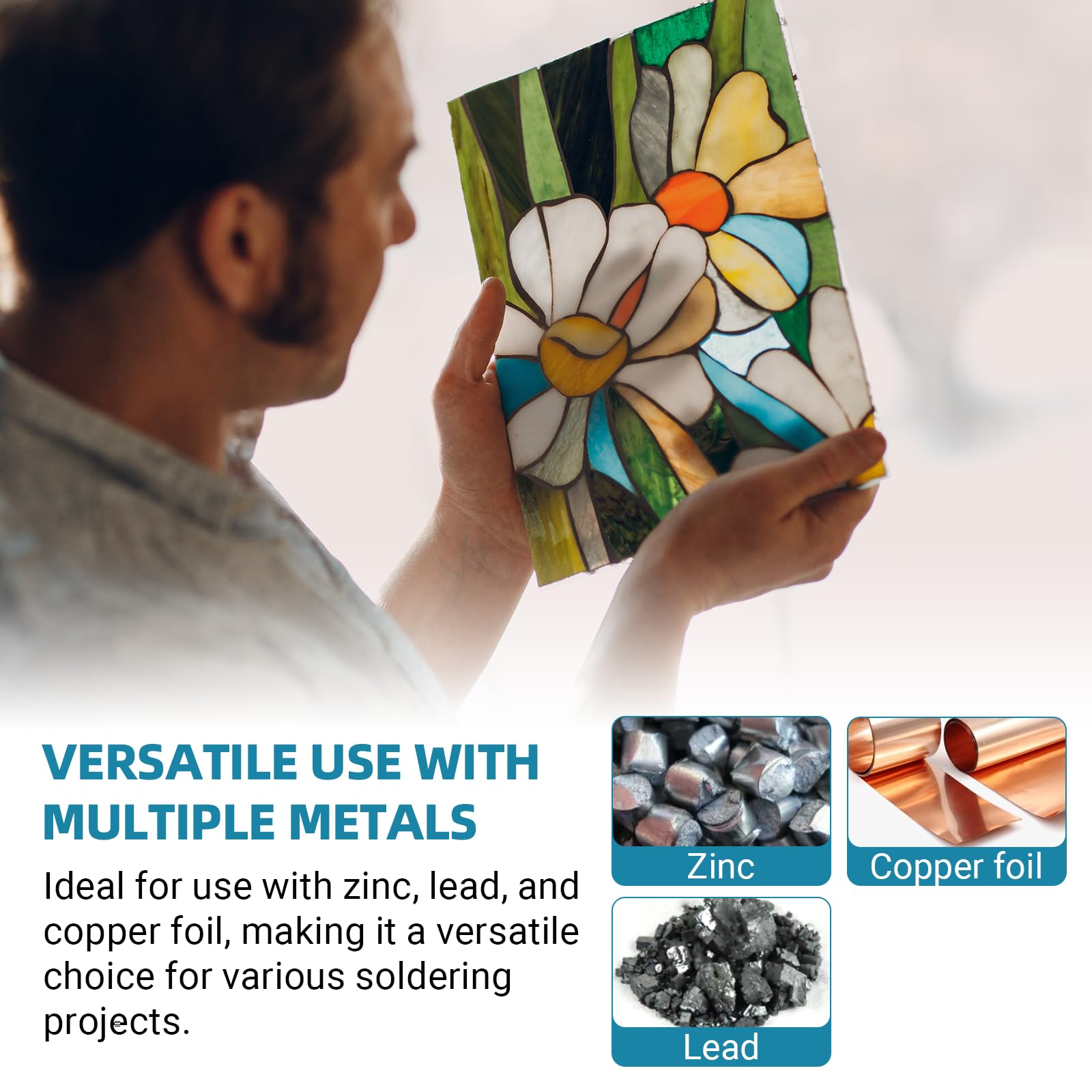 - Versatile Use with Multiple Metals: This handy flux paste soldering is Ideal for use with zinc, lead, and copper foil. Whether you're engaged in a stained glass project, fixing windows, or as stain glass tools and supplies, starter kit, this flux serves as an excellent all-purpose solution. It’s normal for there to be a small amount of sediment at the bottom of the bottle, which does not affect its normal use
