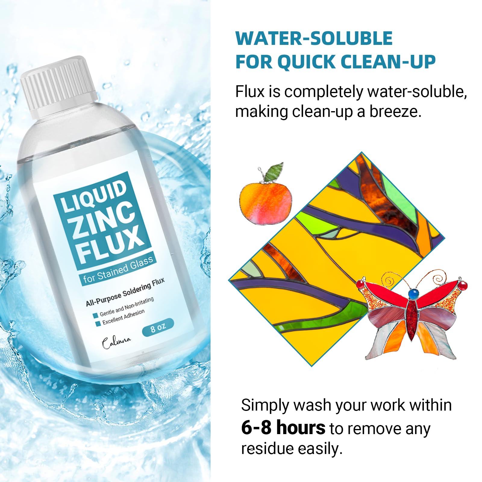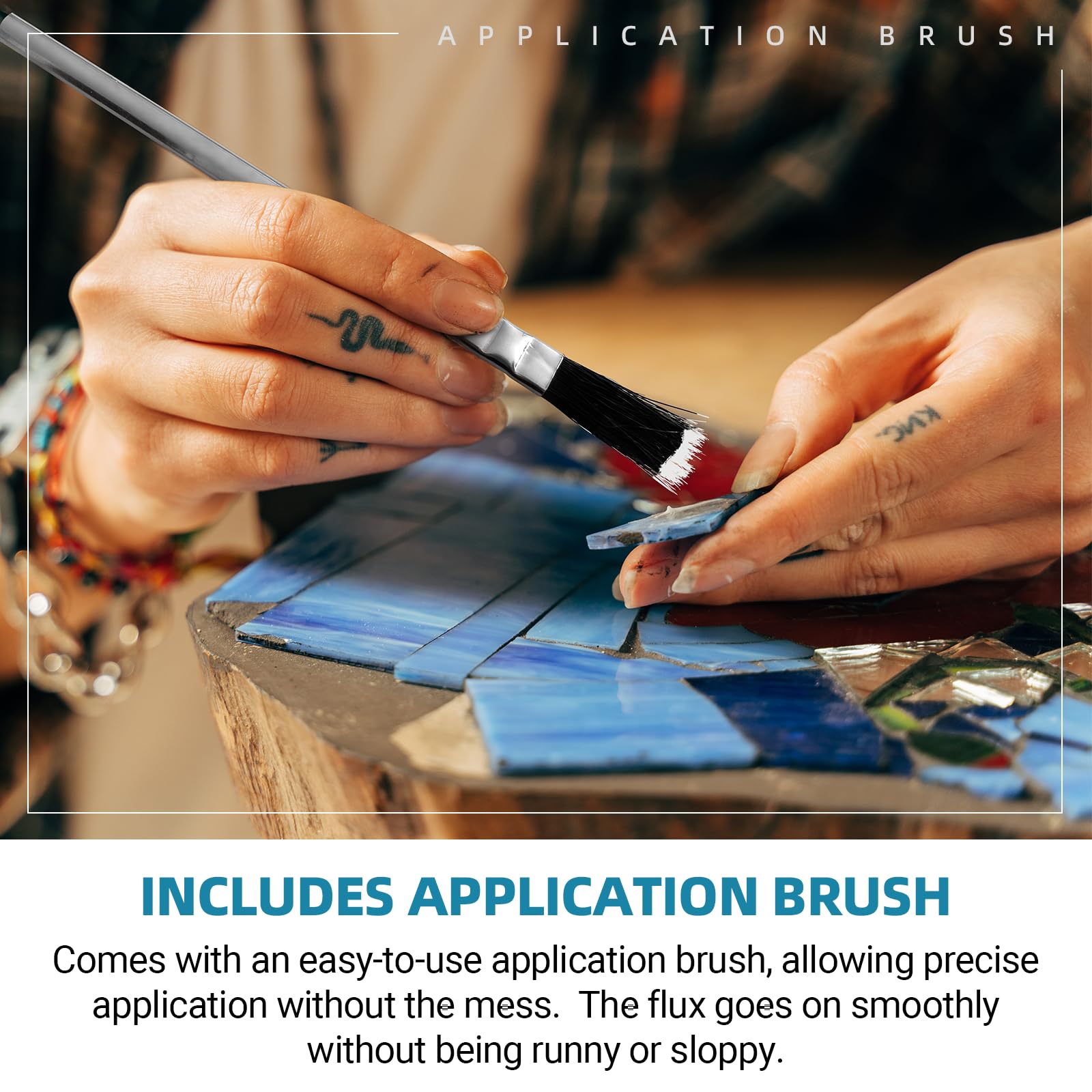 Calvana 8OZ Liquid Solder Flux for Stained Glass, Handy Soldering Flux with Flux Brush, Stained Glass Paint Supplies Kit & Starter Tools, Easy Clean Up, 237ml