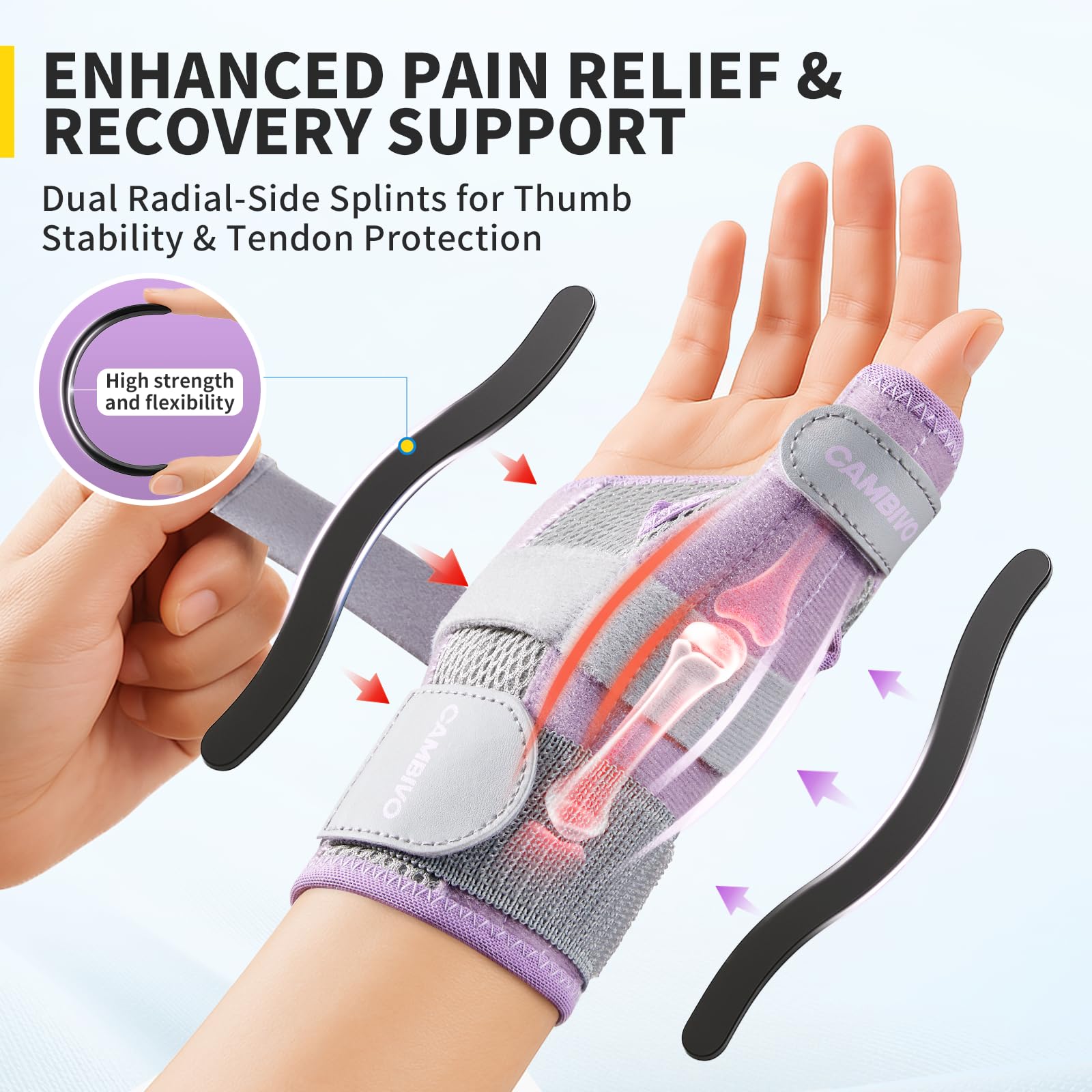 - Enhanced Thumb & Wrist Support: Provides firm yet flexible stabilization for thumb and wrist pain associated with tendonitis, arthritis, carpal tunnel syndrome, sprains, and overuse injuries; the reinforced dual thumb splint helps reduce pressure and speed up recovery