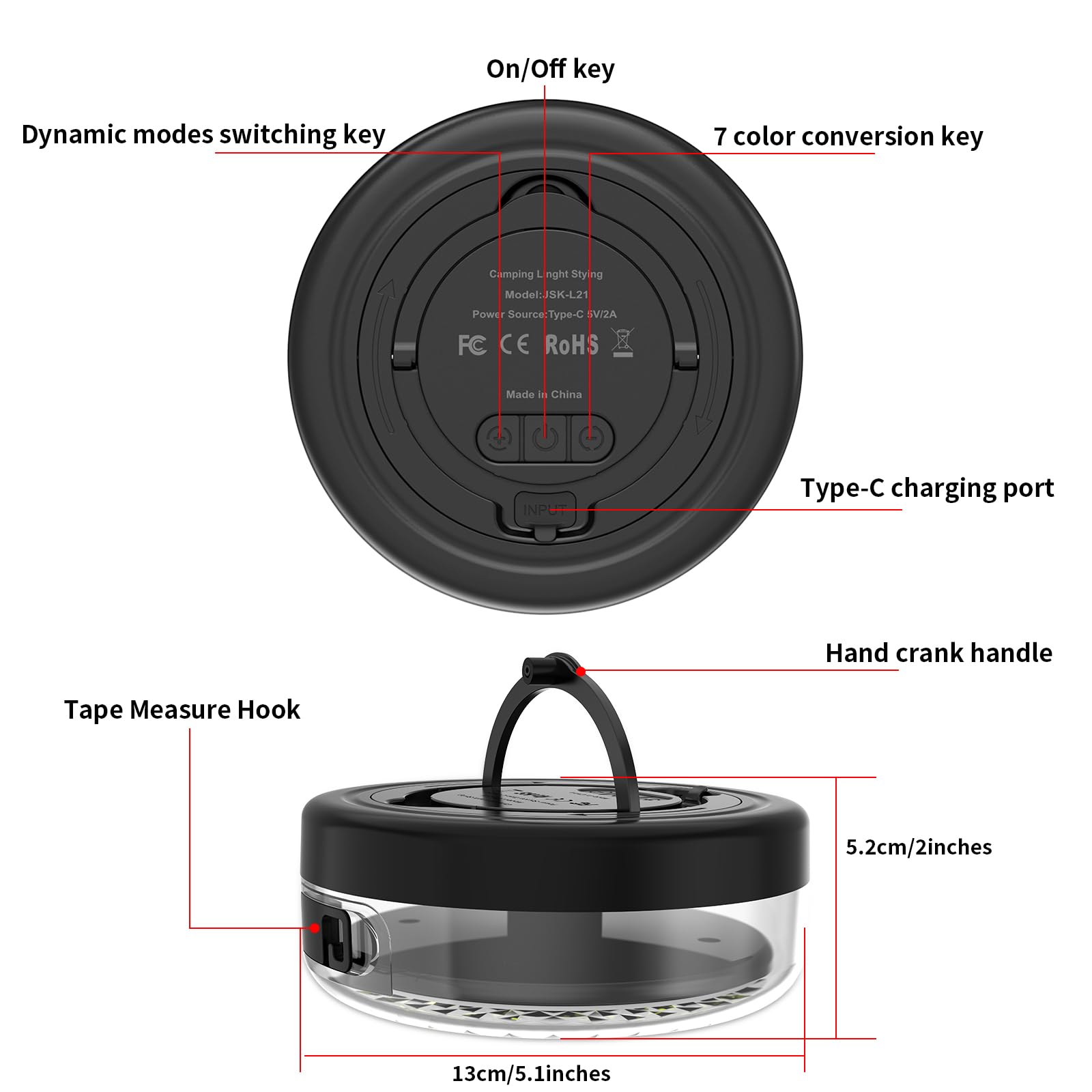 - Portable & Easy to Use: Weighting only 0.83 pounds and featuring a compact design with size 5.11*5.11*2.04 inches, Tent Light is ultra-portable to recover the string lights with its hand-operated device for only about 30s. The led camping lights are also equipped with a hook, which can be easily hung on a backpack, tent, or hanging tree branch, freeing your hands