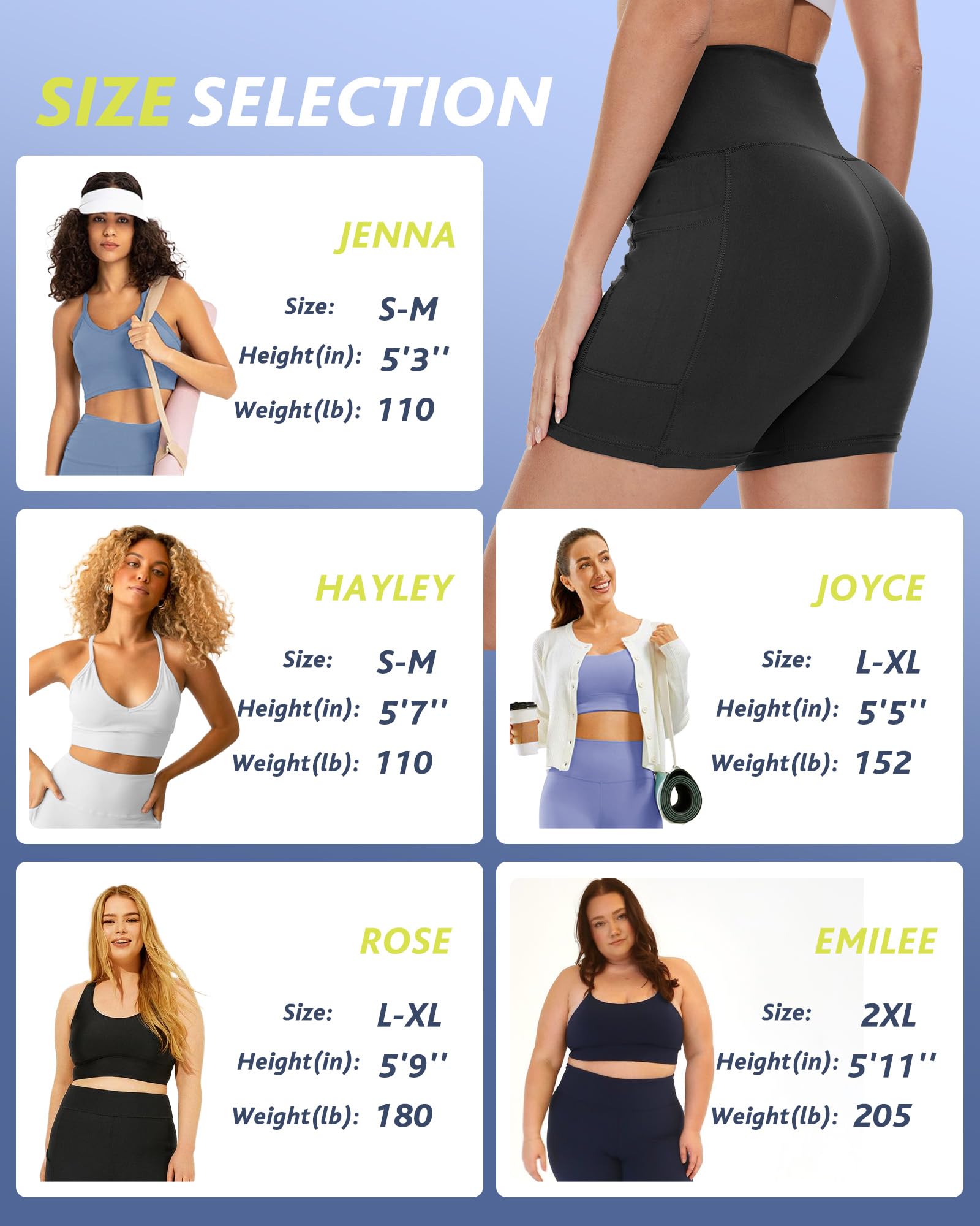 CAMPSNAIL 4 Pack Biker Shorts Women with Pockets – 5"/8" High Waist Tummy Control Workout Gym Yoga Running Compression Shorts