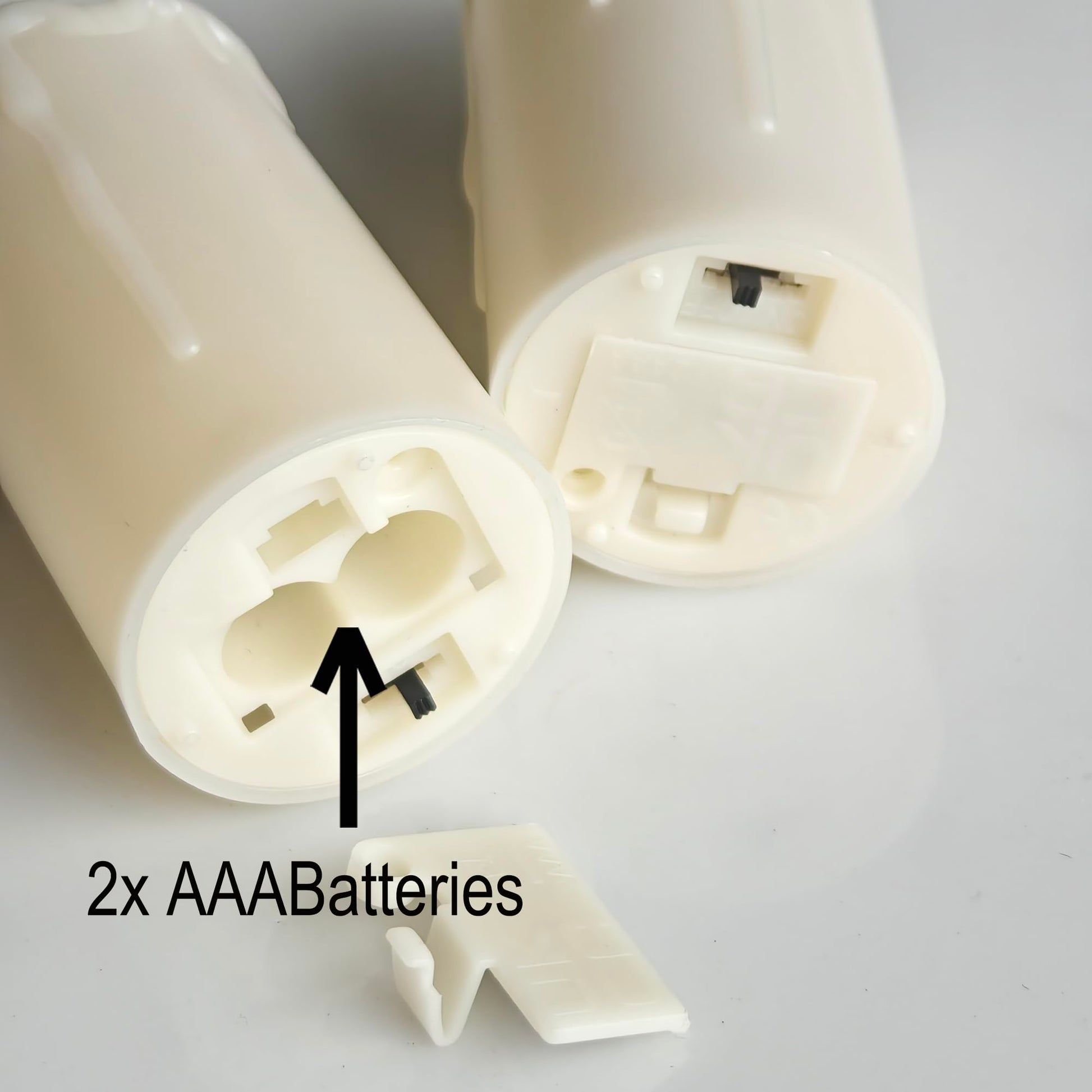 Battery: Each candle requires 2 AAA batteries (not included), and the remote control requires 2 AAA batteries (not included)