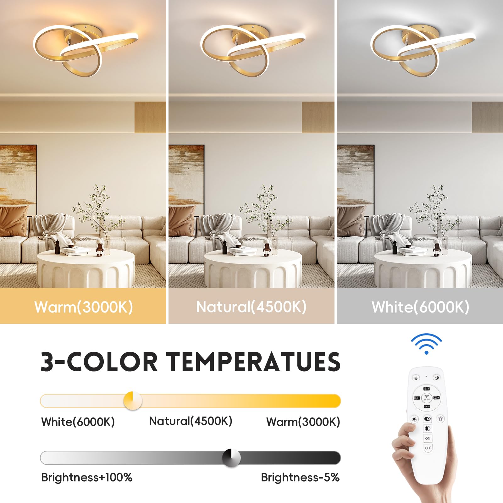 - VERSATILE ILLUMINATION OPTIONS - Contemporary LED ceiling light fixture boasting a dimmable LED light source. Tailor the brightness from 10% to 100% and color temperature from 3000K to 6000K to suit your preferences via remote control. Features night light mode and memory functions for ultimate convenience.