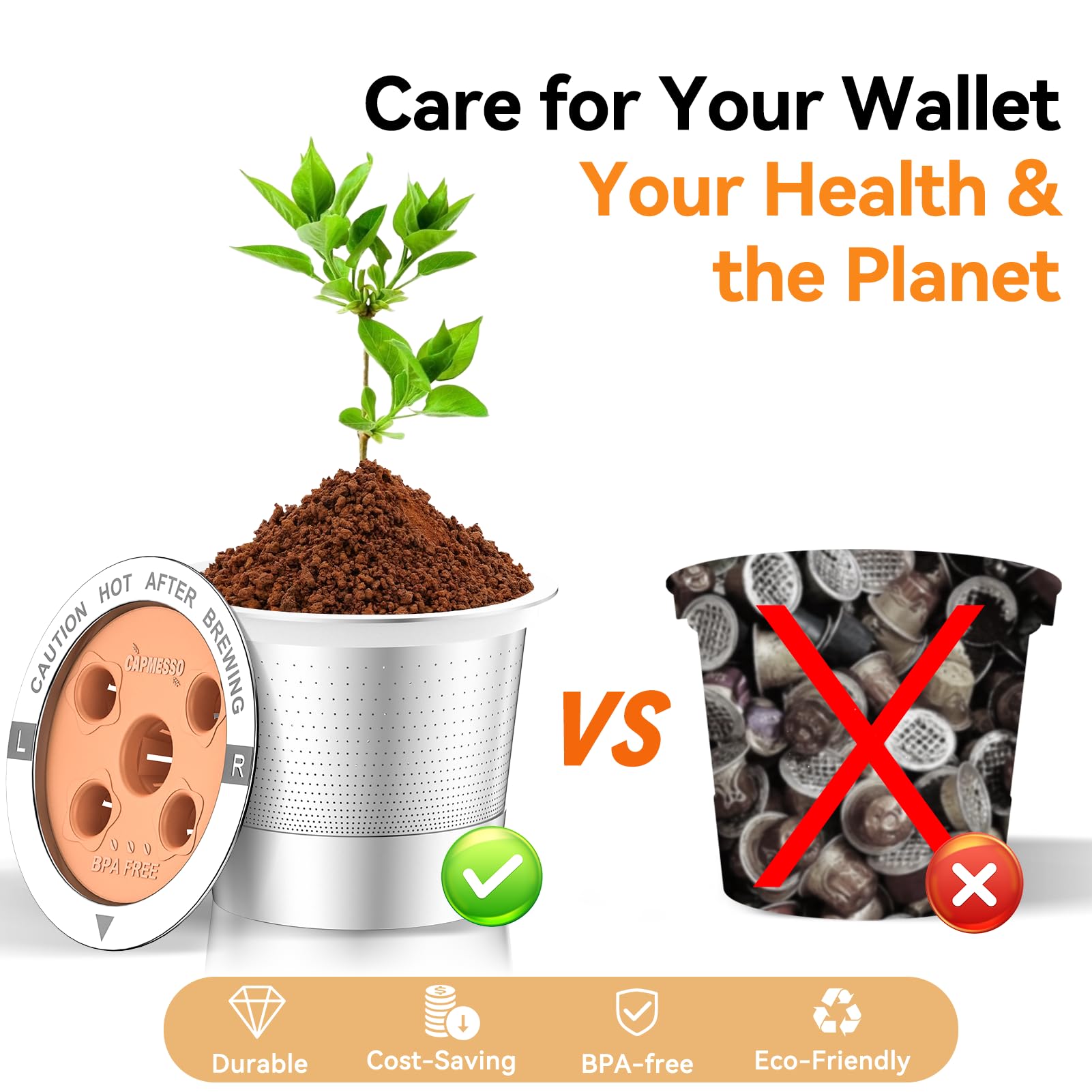- 🎉Healthy & Safe – Brew with Confidence: Every detail is crafted with your health in mind. Made from premium 304 food-grade stainless steel and a safe silicone ring, these metal kcup refillable coffee pod for keurig slim are heat-resistant, durable, and 100% BPA, Lead, and DEHP free. Whether you enjoy daily coffee or custom tea, you and your family can drink with peace of mind, knowing every brew is pure, safe, and worry-free