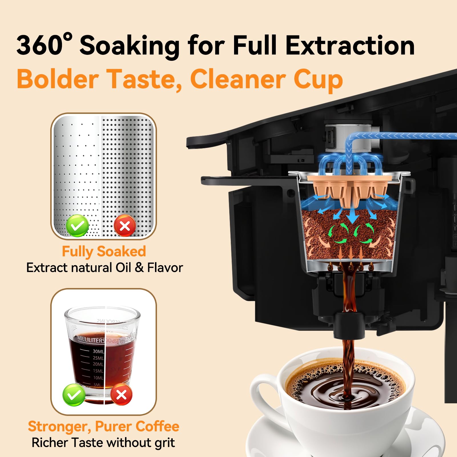 - 🎉Upgraded 5-Hole + Micro Mesh for Rich, Balanced Flavor: The 2025 upgraded keurig coffee pods reusable features a 5-hole multi-stream lid with an anti-slip silicone ring that seals tightly to prevent leaks and backflow. The innovative micro mesh coffee filter body ensures even water distribution, extending steeping time for full extraction of every coffee ground’s aroma and flavor, while filtering out most residues. Say goodbye to weak, gritty or bitter coffee and enjoy smooth, café-quality taste from the first sip to the last