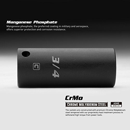 - Expertly coated with manganese phosphate, the preferred coating in military and aerospace, which offers superior protection and corrosion resistance compared to black oxide coating on other impact sockets