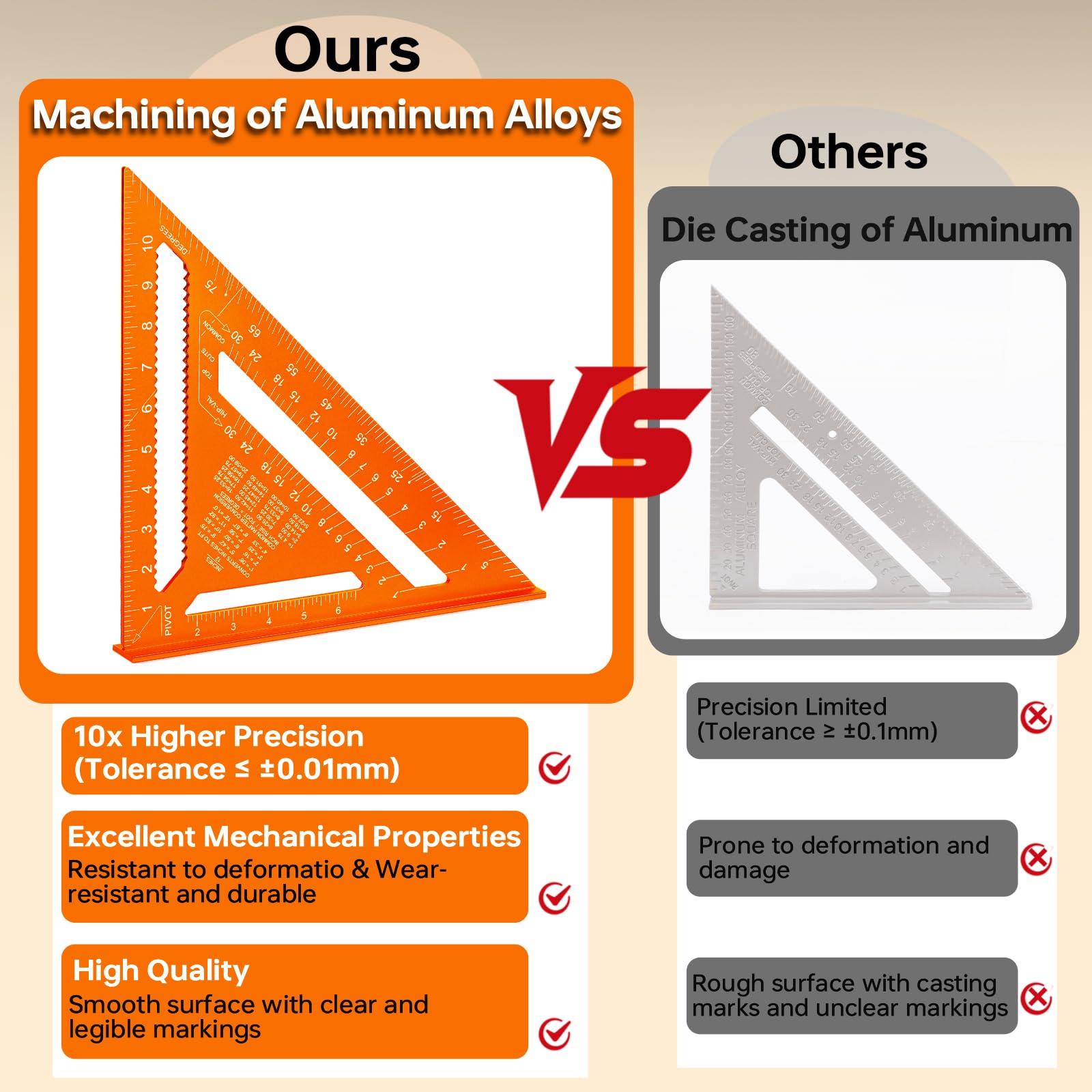 - [Durable Aluminum]: This carpenter tool is resistant to rust and corrosion, suitable for outdoor and indoor use. It is made of durable aluminum, a heavy-duty construction rafter square ensures longevity and reliability