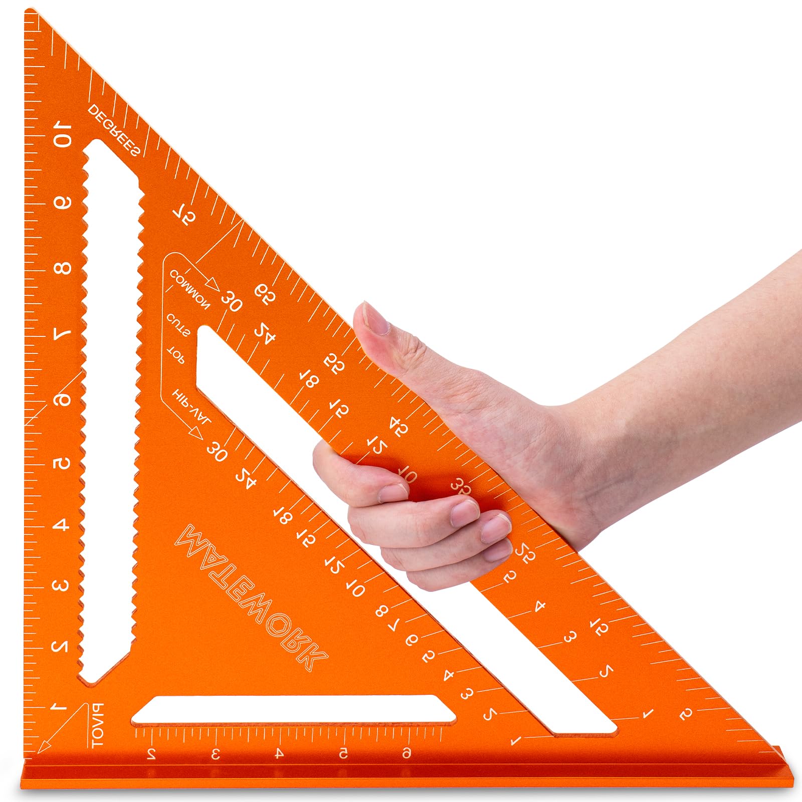 - [Measurement Scales]: This 12 inch carpenter square Includes a precise, laser-etched measurement scale for accurate readings. Our rafter square also features a 90-degree angle for for square cuts and layout and mark angles up to 90 degrees