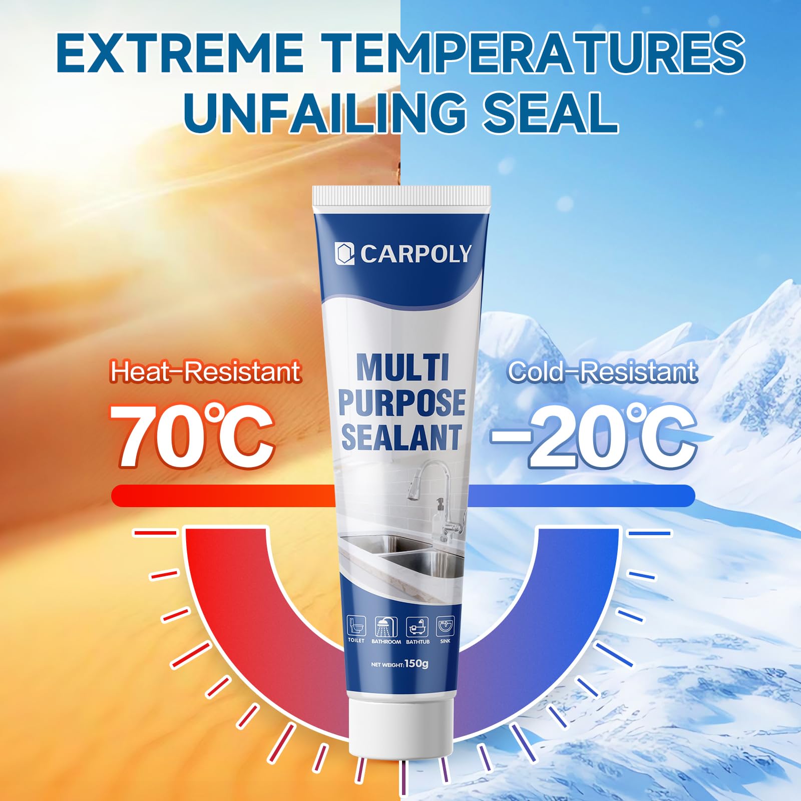 - VERSATILE FOR ALL HOME SEALING NEEDS – Carpoly bathroom caulk works seamlessly across key areas: showers, bathtubs, kitchen countertops, toilet bases, sink edges, sink gaps, and baseboards. Whether you need stain protection or gap sealing, this waterproof caulk delivers reliable results, covering all your home’s sealing needs in one solution.