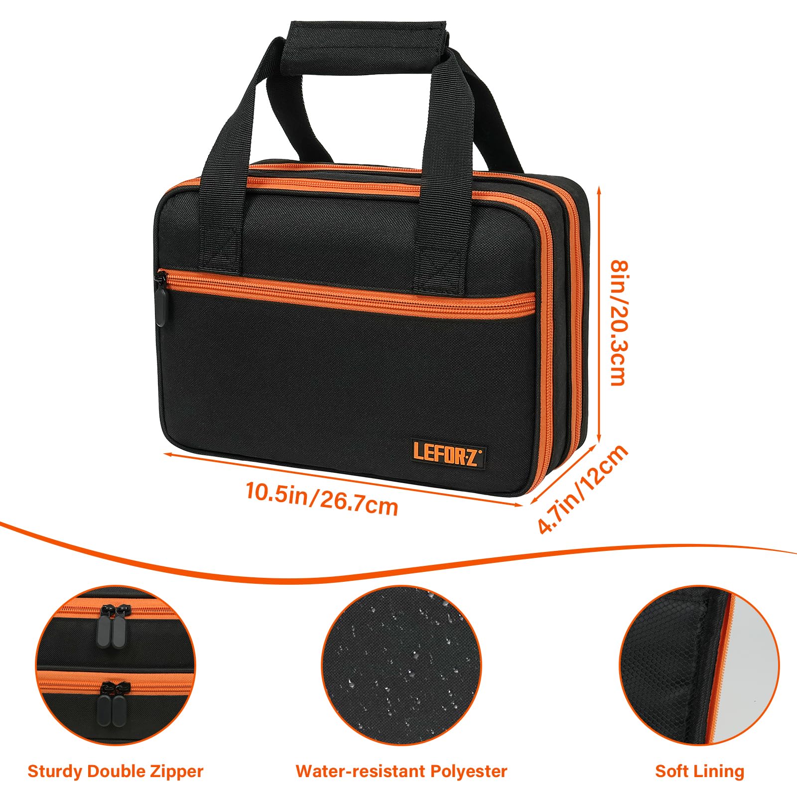 - Portable: Size: 10.5x4.7x8 inch; The portable circuit breaker organizer case is compact and lightweight,the sturdy and comfortable handle allows you to easily carry the tools anywhere. (Note: Only electric outlet tester tool travel case, not include any tools and accessories.)