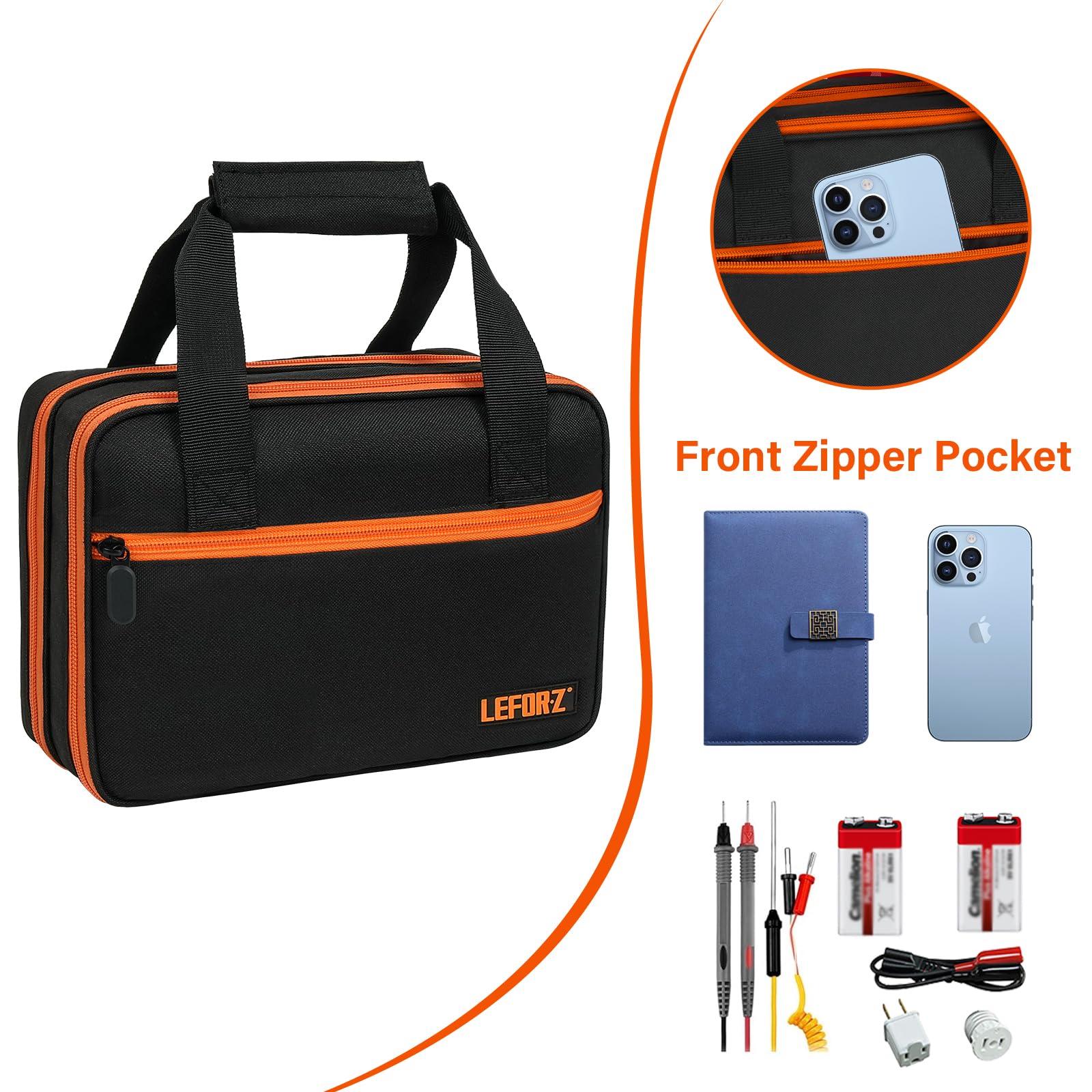 - Large Capacity: In addition to the elastic band compartment, this circuit tester storage box also comes with two large zippered mesh pockets and a front pocket to accommodate your socket repair tool kit, wires, batteries and other small items, etc., which is enough to meet your daily work storage needs