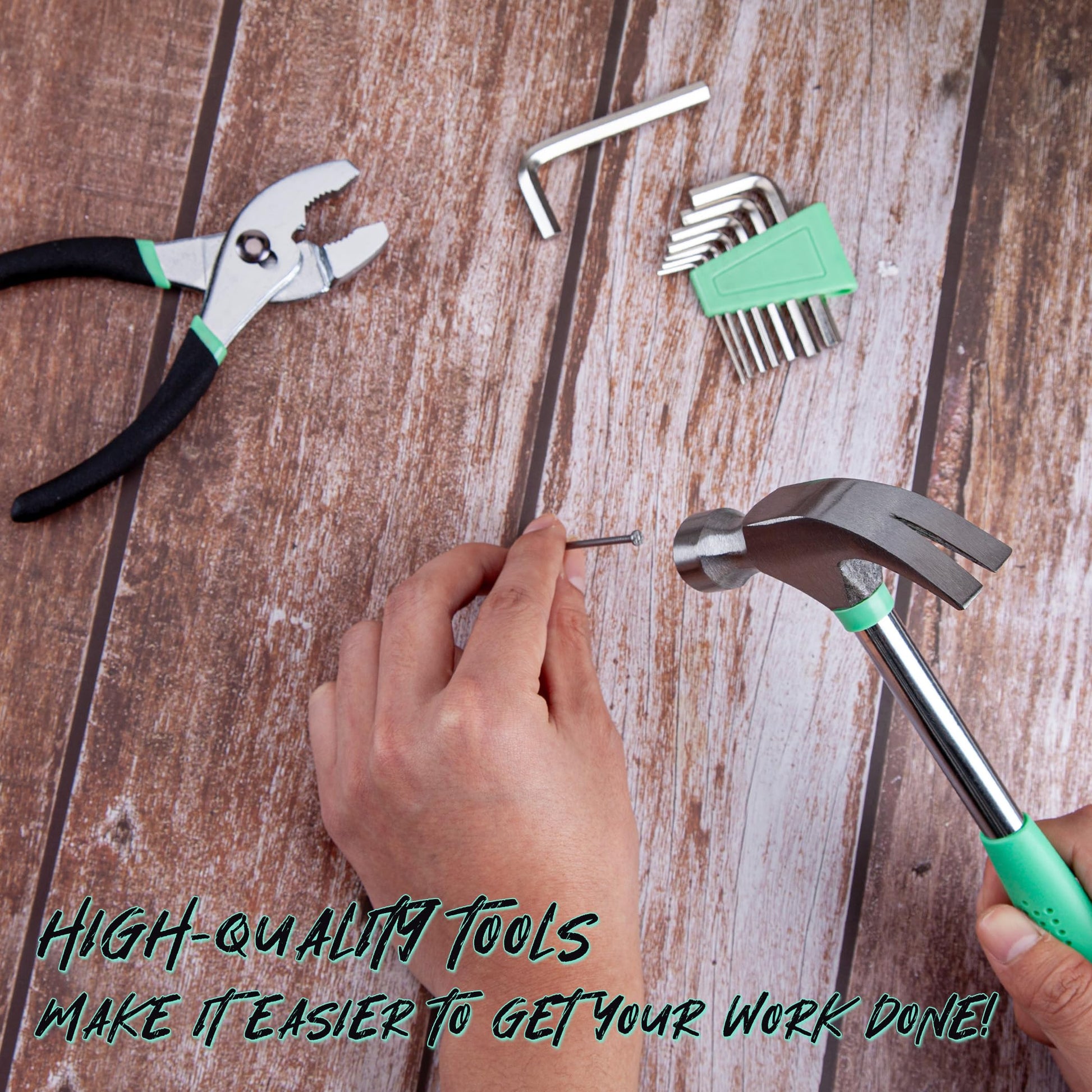 - Complete DIY Toolkit:Equipped with a wide range of tools for everyday fixes and DIY jobs, featuring a hammer, pliers, screwdrivers, tape measure, and additional items