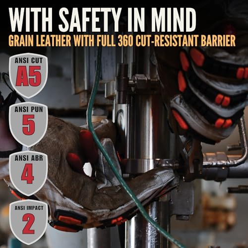 Cestus 3219, Goatskin Leather Impact Gloves, ANSI Cut A5, Heavy Duty Work Gloves for Construction Oilfield Demolition