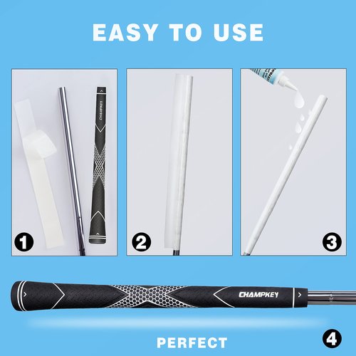 Easy To Use: The golf grip tape is easy to peel liner, saving time for you. High Performance: The champkey golf tape thickness is 0.33mm which provide sticky in any conditions. Our special golf tape easy to peel and won't bunch up when installation.