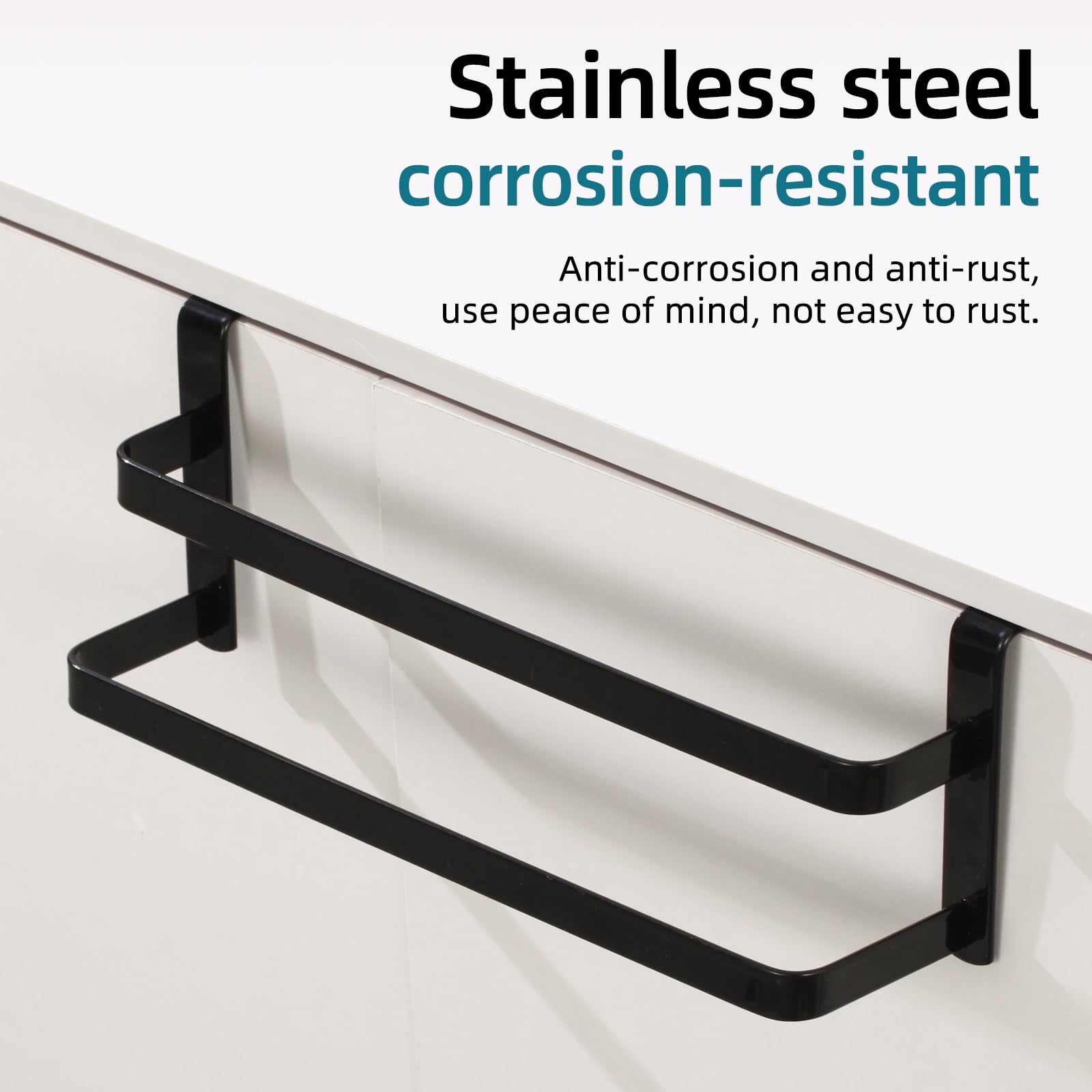CHIKESI Double Layer Over Cabinet Towel Bar Holder, 2-Pack Stainless Steel Towel Bar for Hanging 2 Towels, Over The Door Towel Rack for Kitchen and Bathroom, Space-Saving Towel Hanger (Black)