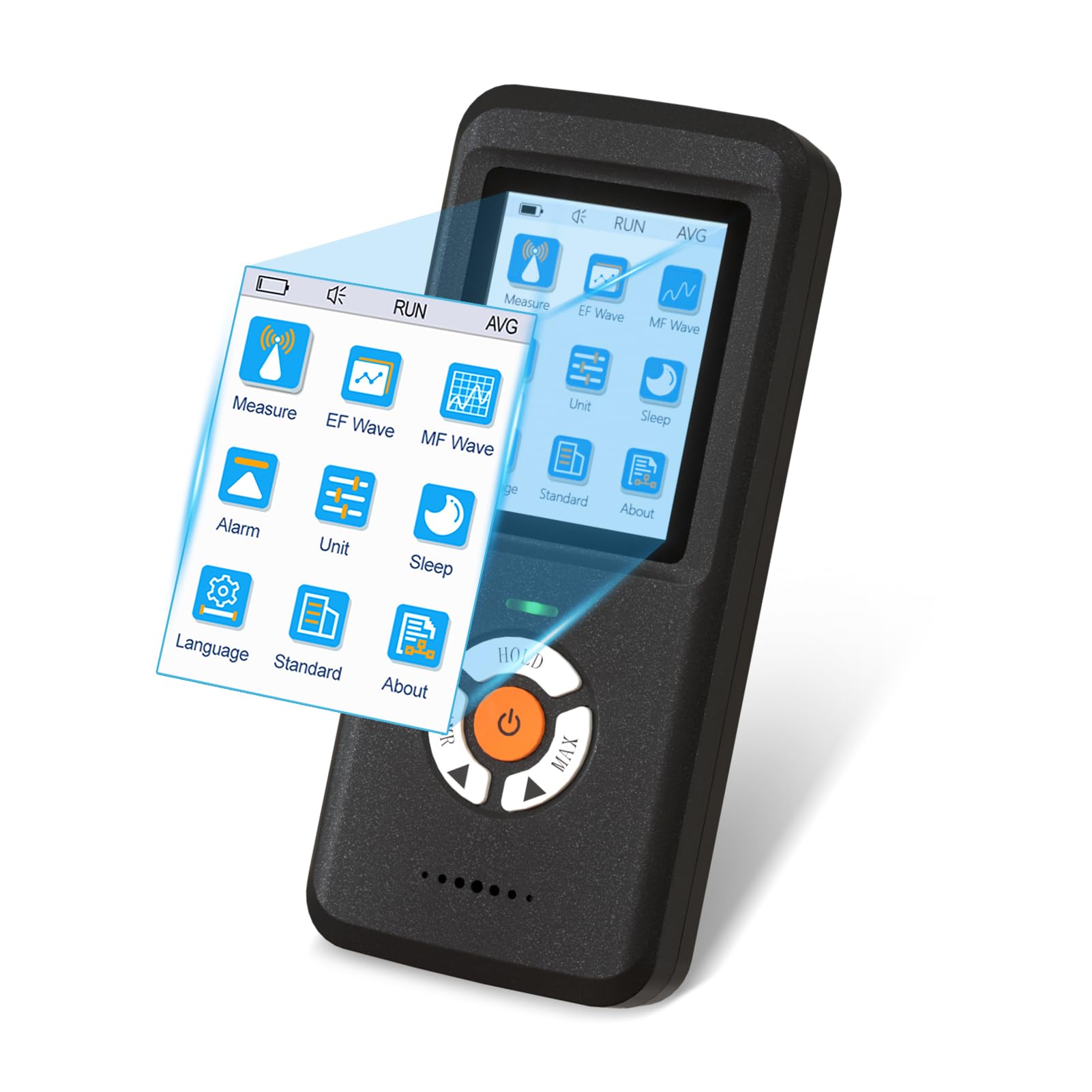 - Intuitive 2.0" TFT Color Screen & Bilingual Menu: Graphical waveform display shows real-time electric/magnetic field fluctuations, while the simplified menu and one-touch HOLD/MAX key make operation effortless for both professionals and beginners.