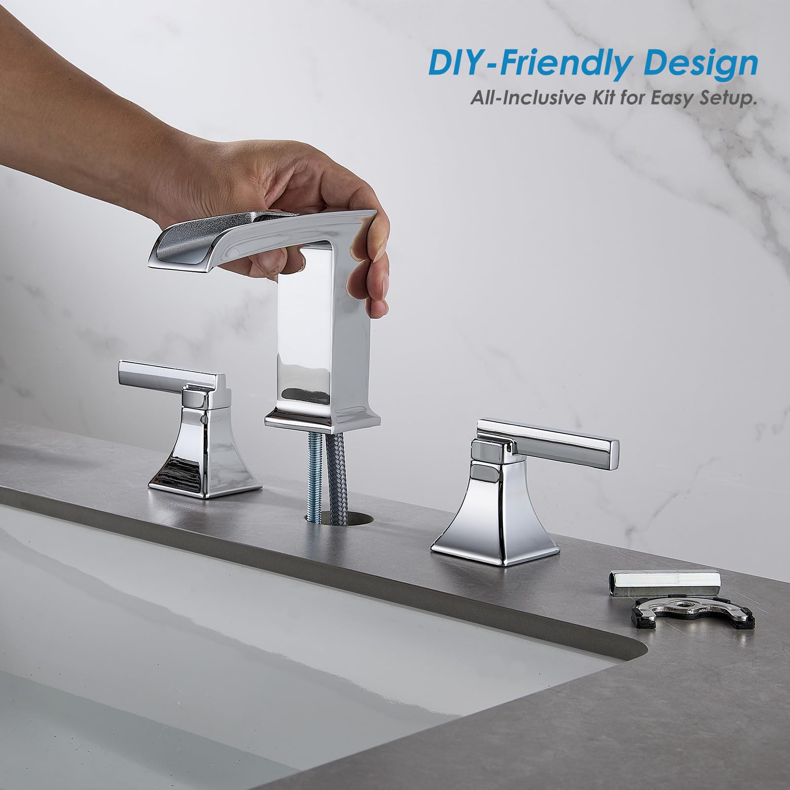 - VERSATILE 3-HOLE INSTALLATION: Designed to fit widespread sinks from 4 to 16 inches, this two-handle bathroom faucet is perfect for both single and double vanities. A refined choice for homes, boutique hotels, farmhouses, or RVs, it complements both modern and classic bathroom aesthetics beautifully.