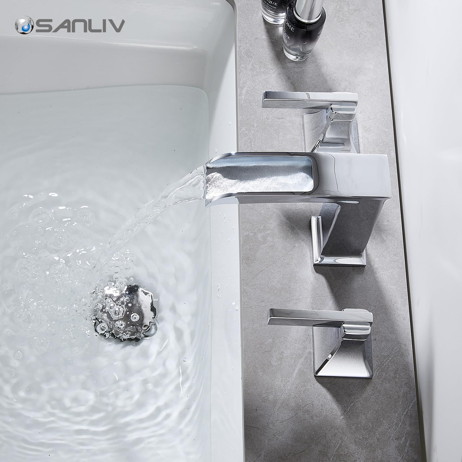 - SPA-LIKE WATERFALL DESIGN: Enjoy a spa-like retreat with the Sanliv chrome bathroom sink faucet. Its unique, patented waterfall spout delivers a soft, fountain-like flow, adding a touch of luxury and relaxation to your daily routine.