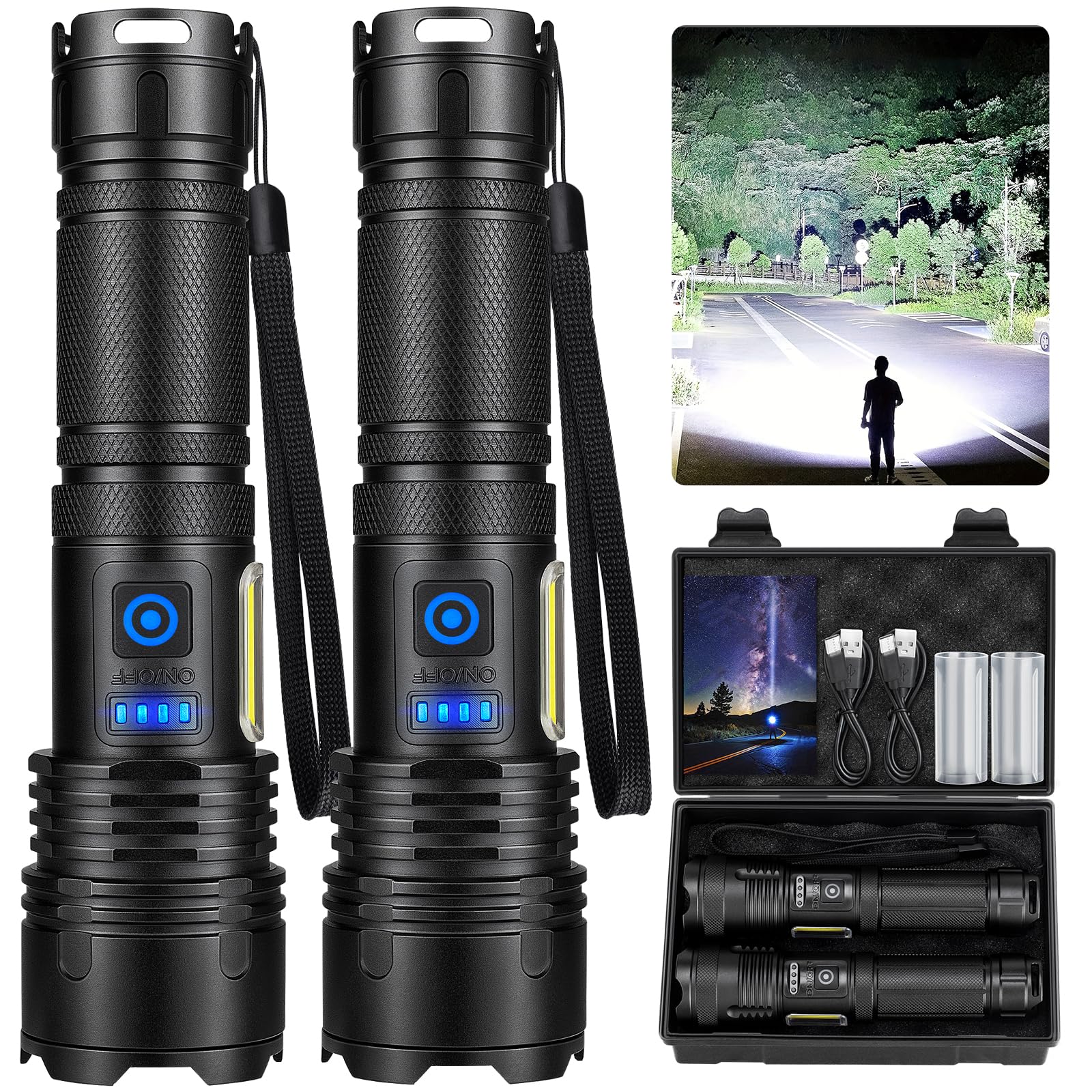 Cinlinso Rechargeable LED Flashlights High Lumens 2 Pack, 90000 Lumen Super Bright Flashlight, 7 Modes with COB Work Light, IPX7 Waterproof Powerful Flash Light for Home, Camping, Emergencies