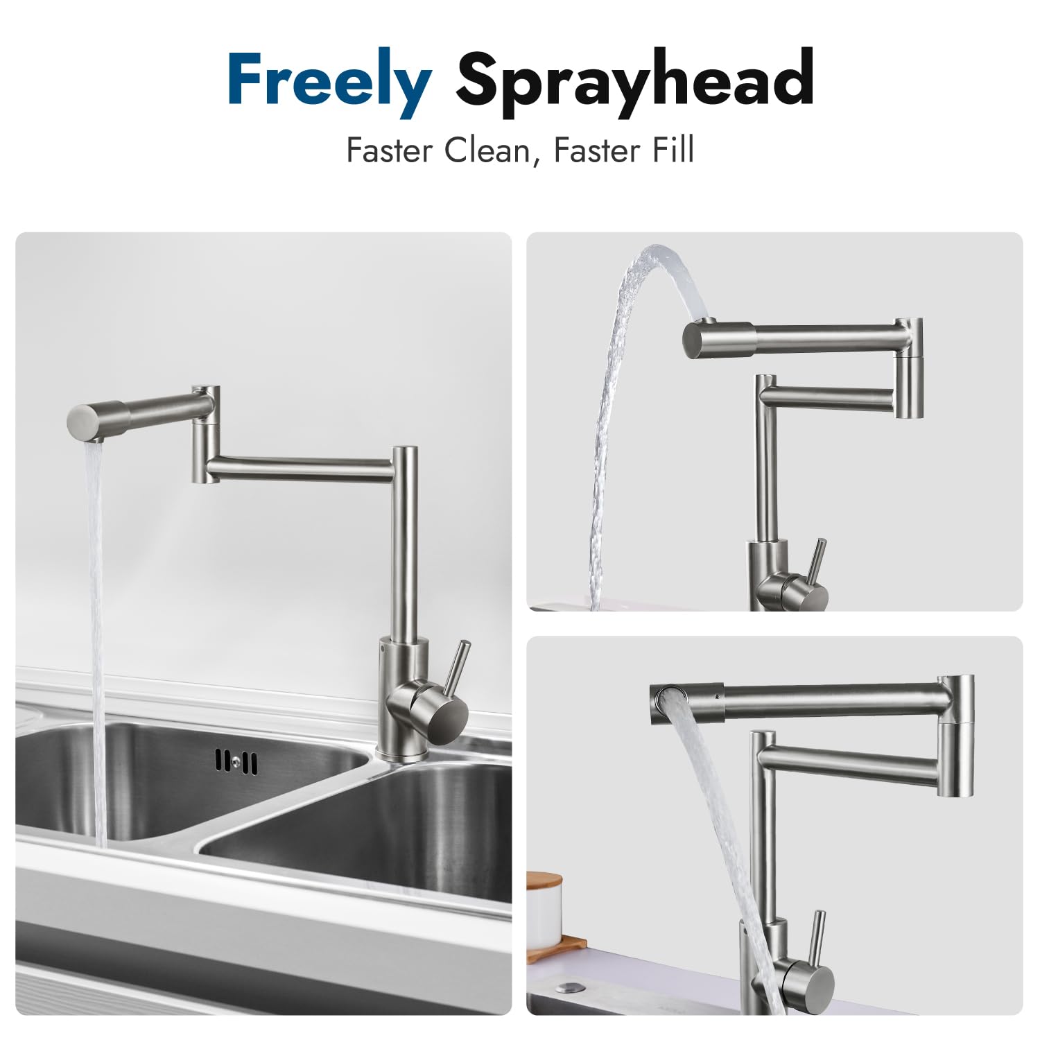 - 【Premium Quality】Flow rate:1.78GPM 8.09 L/min. The core material of this kitchen sink countertop deck mount pot filler is made of food-grade stainless steel, which increases the durability and reliability of the structure