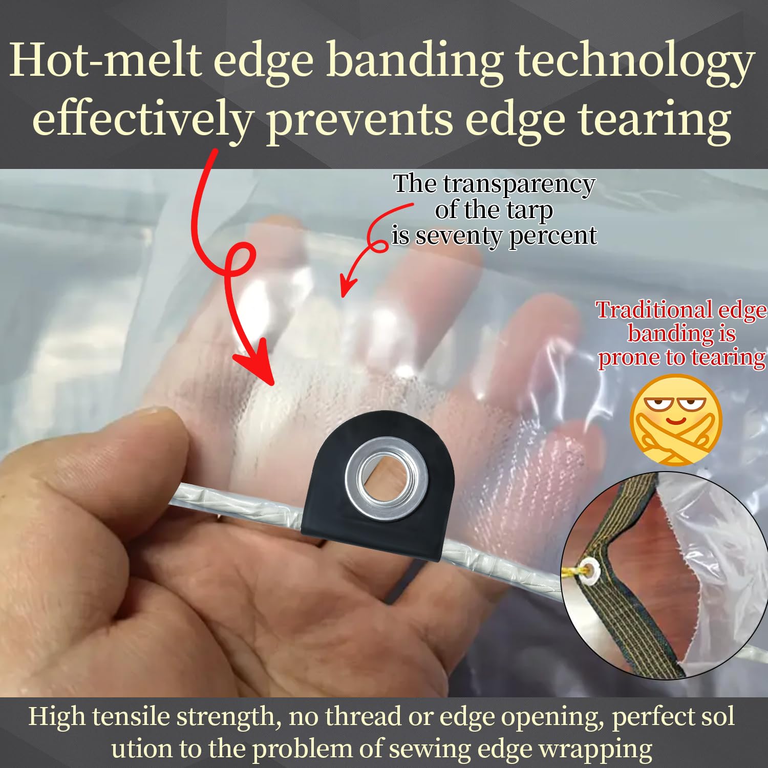 - Quality Craftsmanship:We upgraded the clear tarp edge stitching process of the transparent tarpaulin to a hot-melt process, 100% to the edge is not easy to tear, which enhances the practicality of the clear tarps heavy duty waterproof, improves the fixation of the aluminum buckle plate and the distance between the aluminum buckle plate, so as to achieve both beauty and durability.