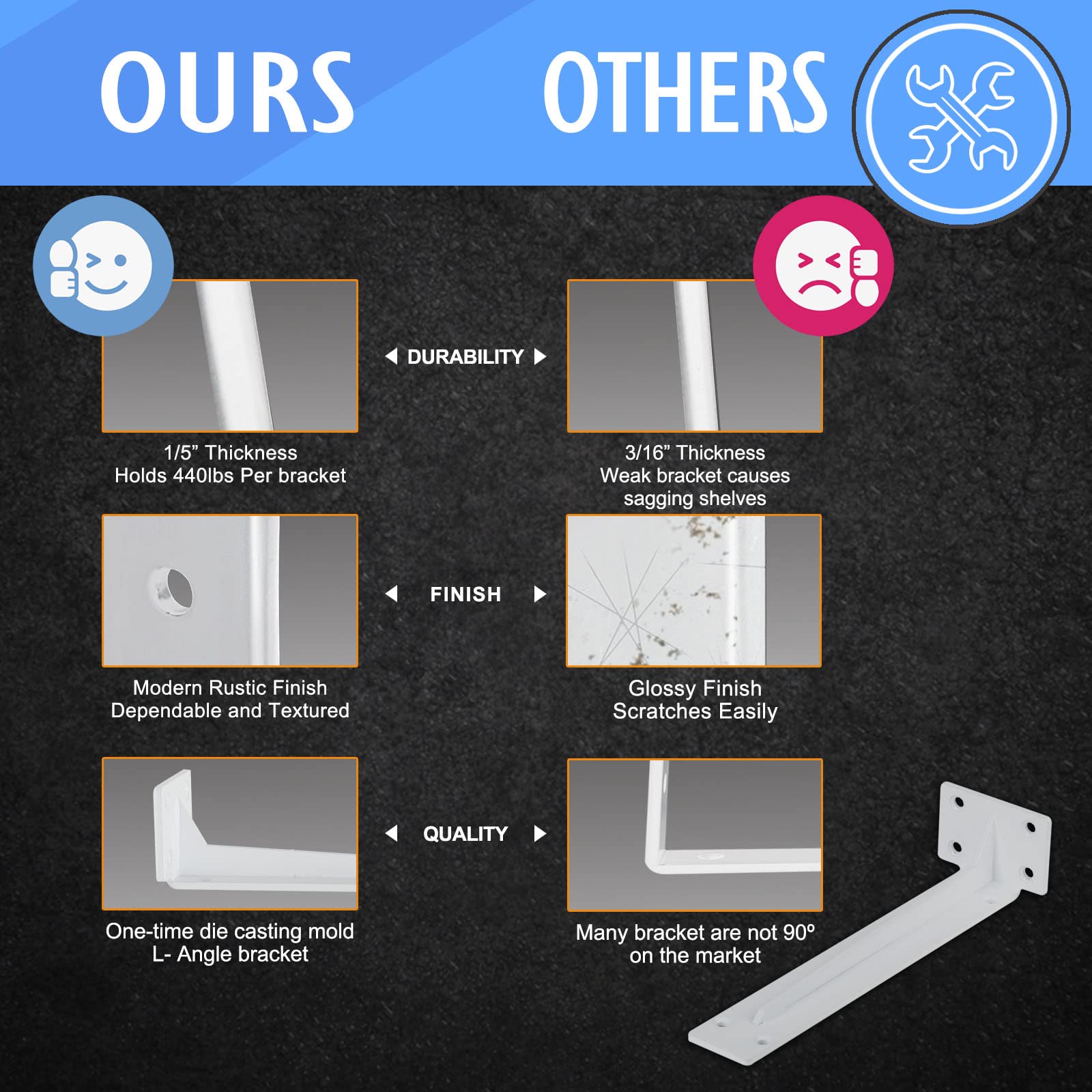 - INDUSTRIAL DESIGN - Quality white protective coating, build to resist daily scratches, corrosion and tarnishing. One-time die casting mold L- Angle bracket. You'll be surprised how good and beautiful the quality is when you get it