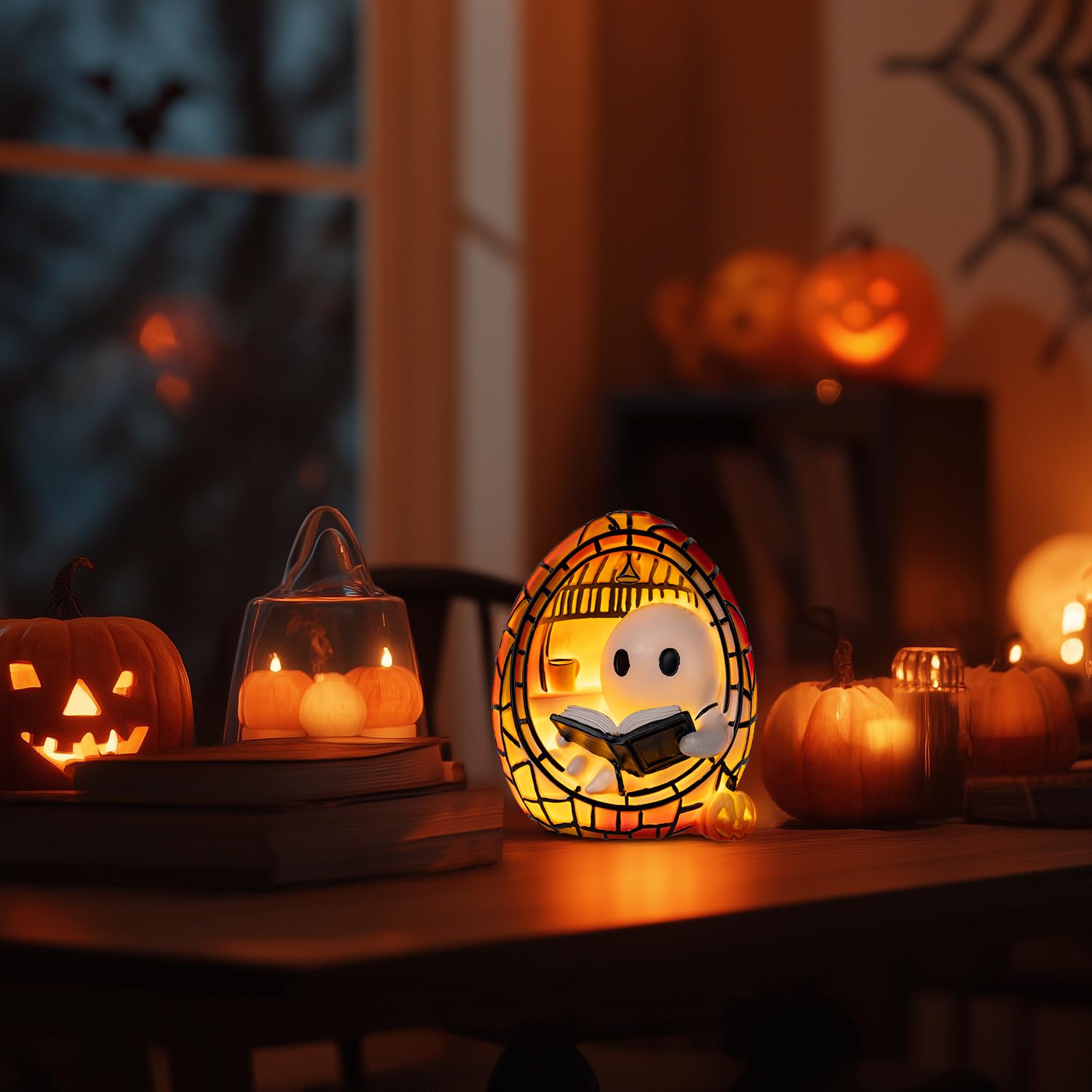 Clussbin Halloween Ghost Reading Book Lamp Halloween Ghost Night Light with Flickering Effect, Halloween Lights Indoor Ghost Decor