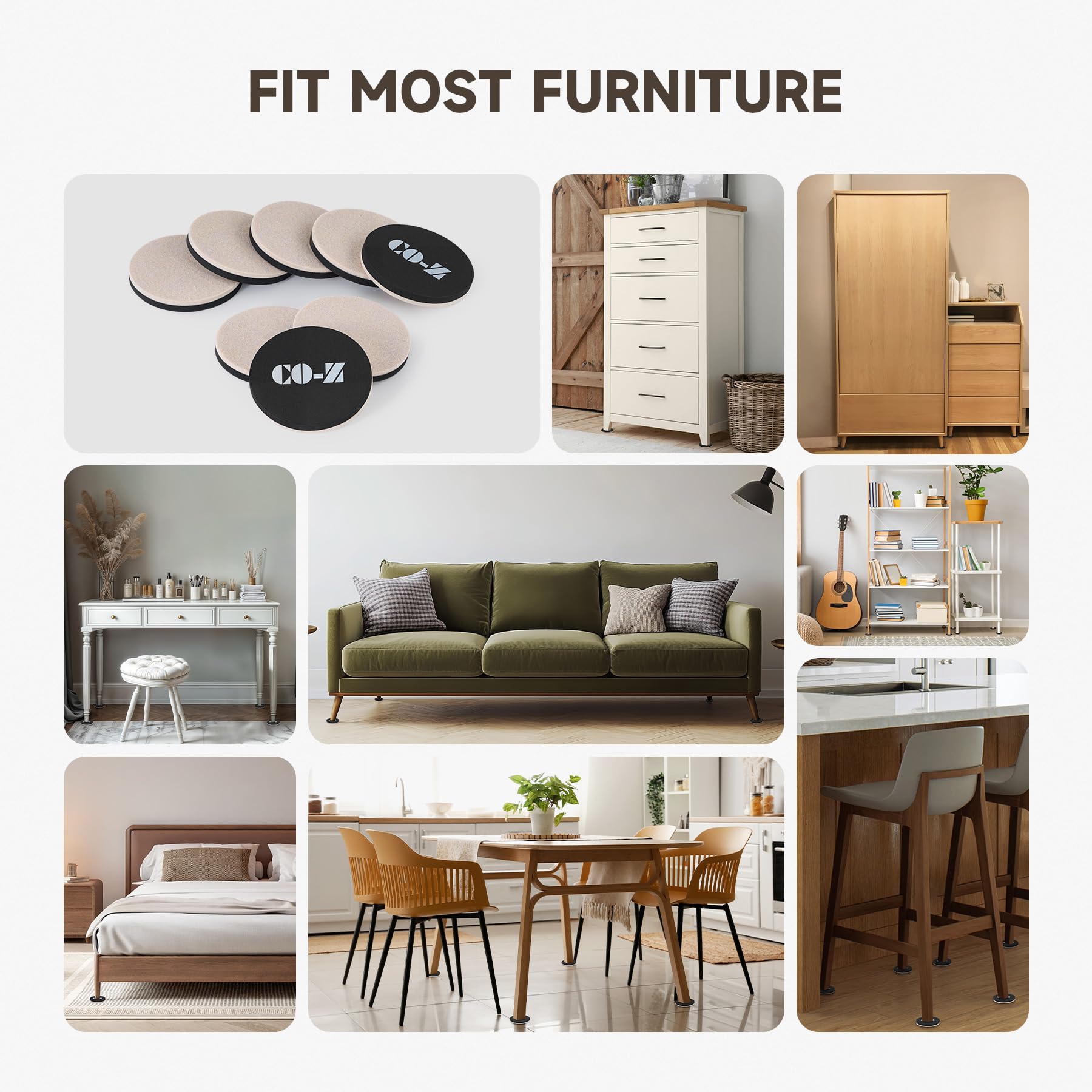 CO-Z 8pcs Felt Furniture Sliders for Hardwood Floors, 3 1/2 in Reusable Furniture Pads, Heavy Furniture Movers Sliders for Hard Surfaces, Thick Moving Pads Floor Protectors for Vinyl Tile Floors