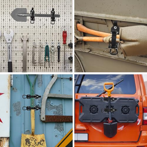 - Wide Application: install metal rubber shovel holders on roof rack, track bed rack to keep shovel, axes, hammer, rake, hoses securely in place; Widely applied on work vehicles, trailers, off-road trucks, 4 x 4s, RVs, boats, or on other walls